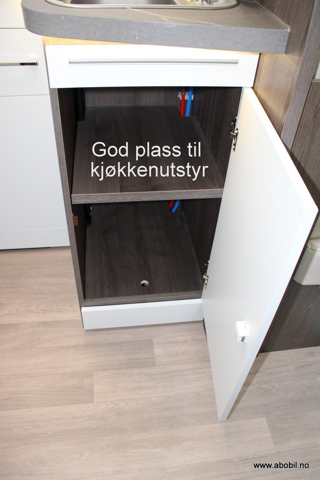 Masse skapplass til kasseroller, kjøkken redskaper, kopper og kar. Romslig vask!