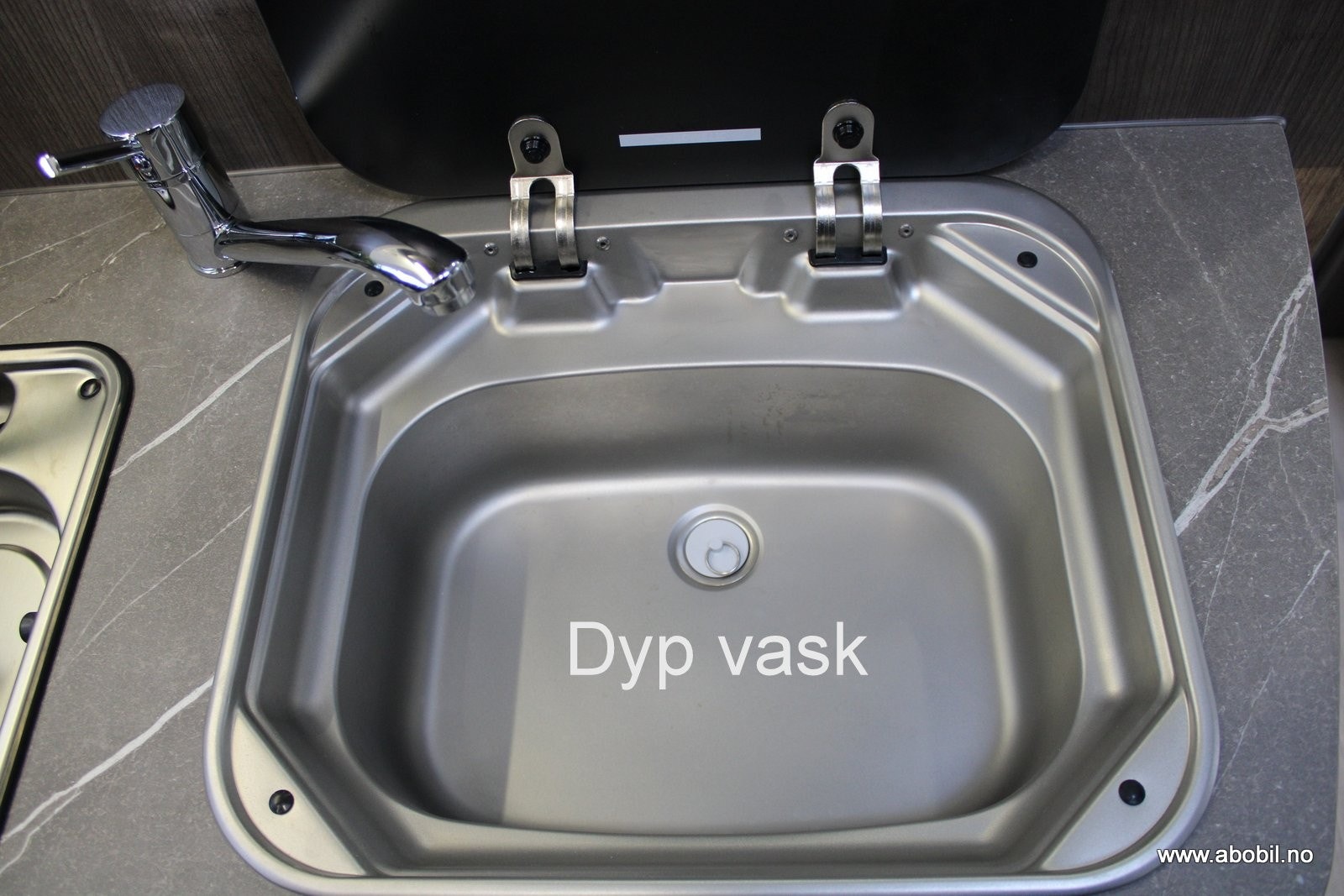 Det er 2 avløp i dusjen på denne modellen Benimar for ekstra god drenering selv med litt helling på bodelen ved f.eks fricamping.