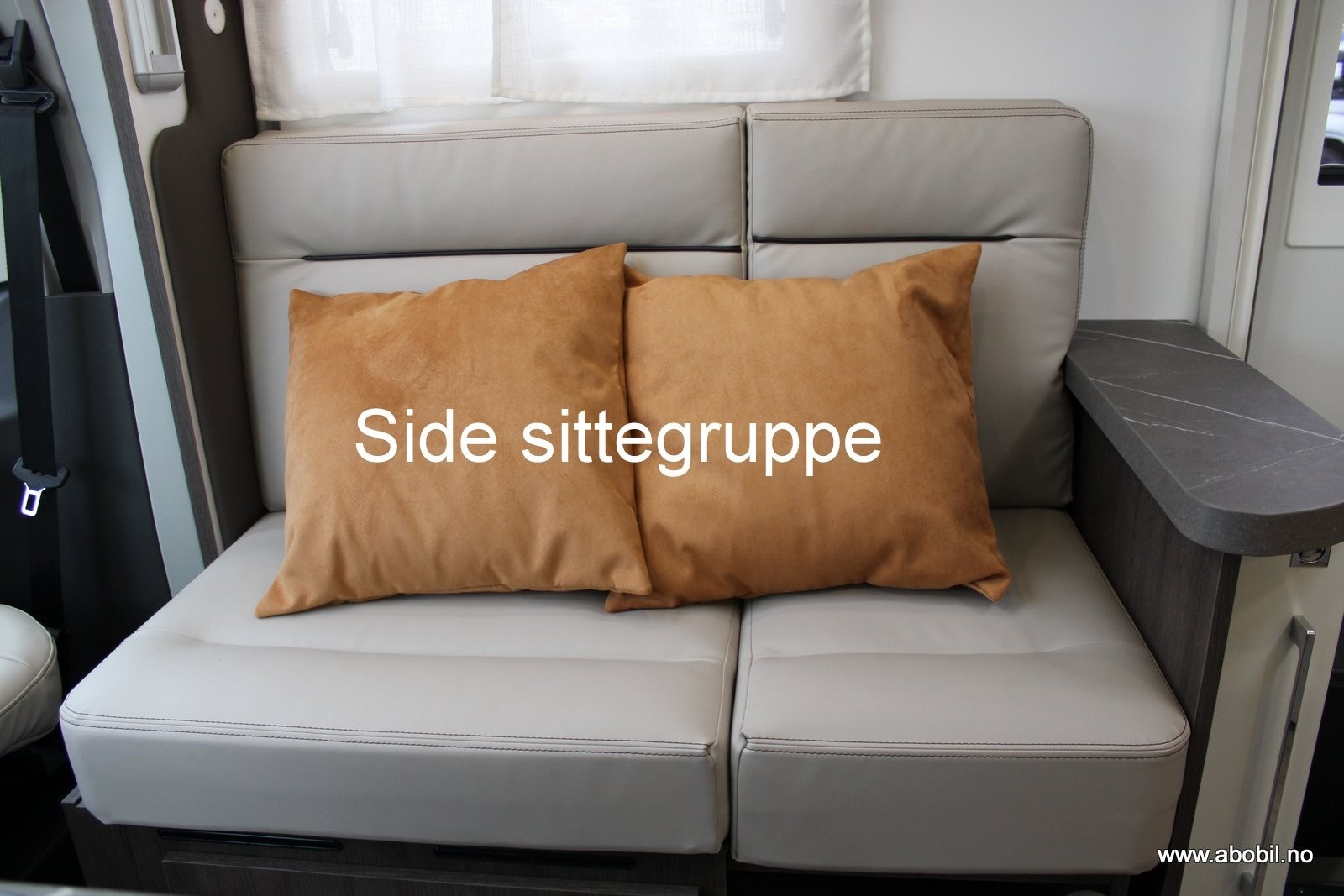 Bobilen har 4 sengeplasser 2 av sengeplassene er i sovedelen bakerst.