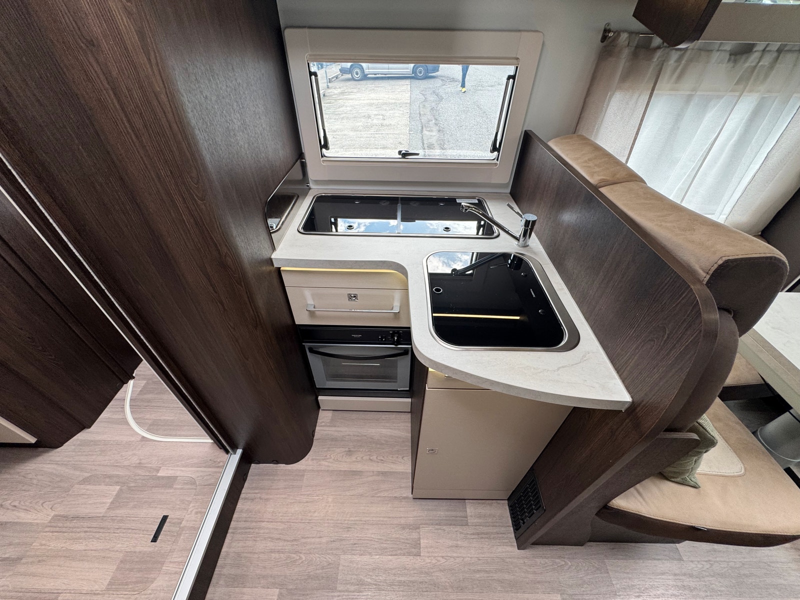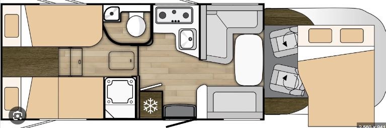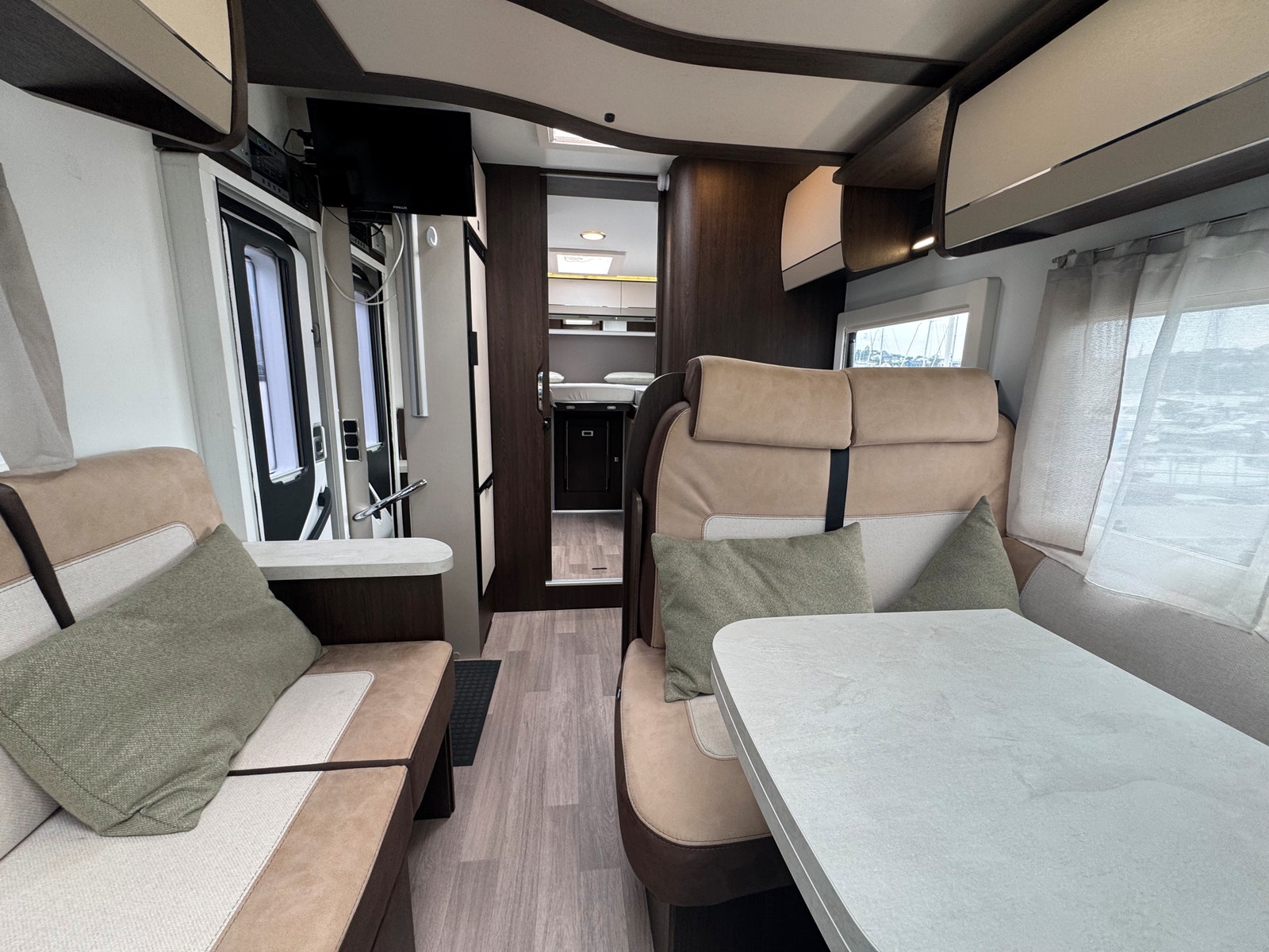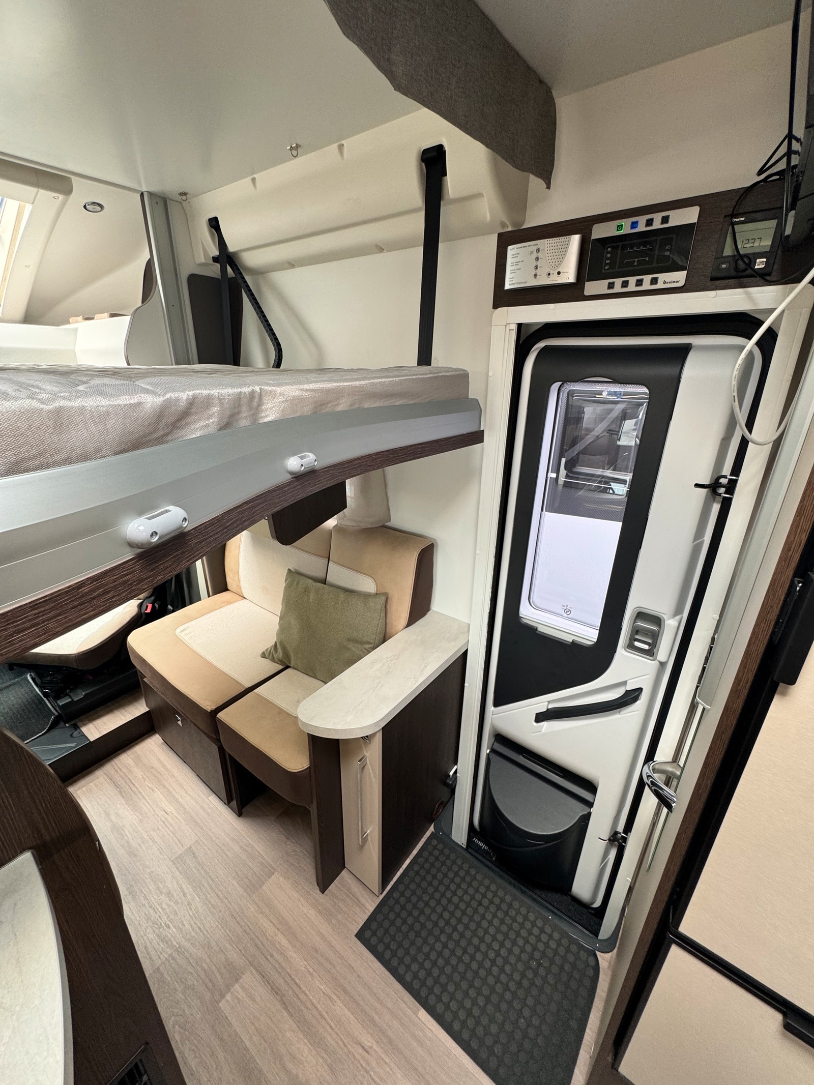 To enkle senger bak + elektrisk takseng fremme. En nydelig bobil med smarte planløsninger!