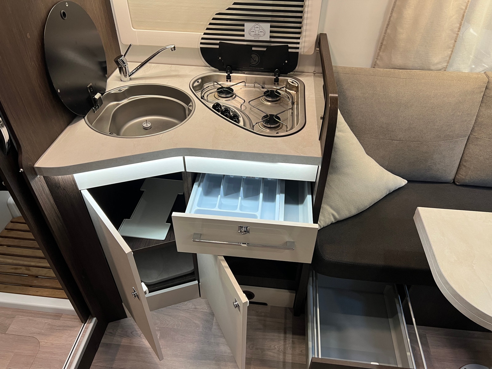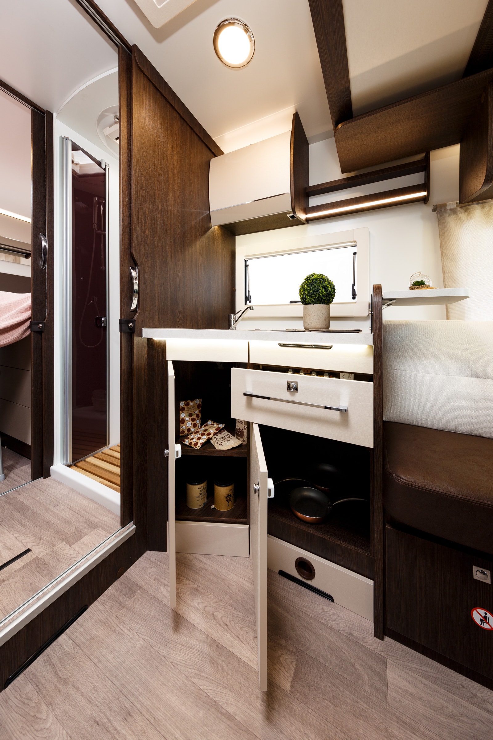 Bobilen har også en av markedets mest romslig garasje med luker på begge sider.