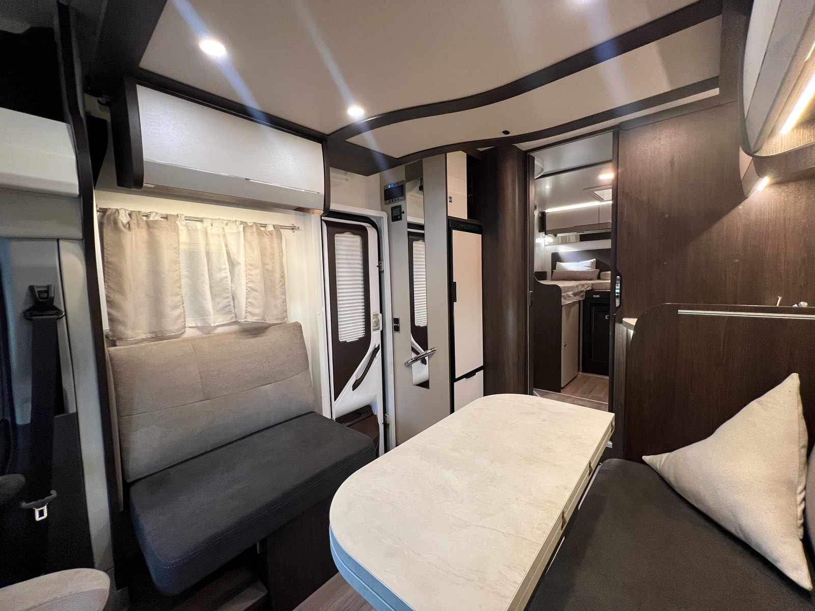 I front har du en svært romslig salong med face to face sittegruppe, hvor du og har et stort bord med mange justeringsmuligheter.