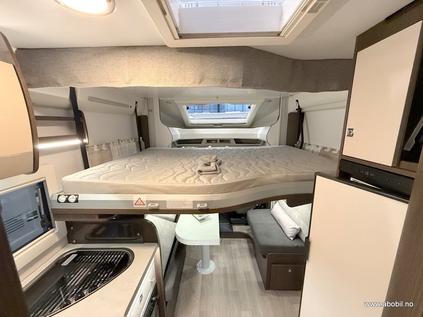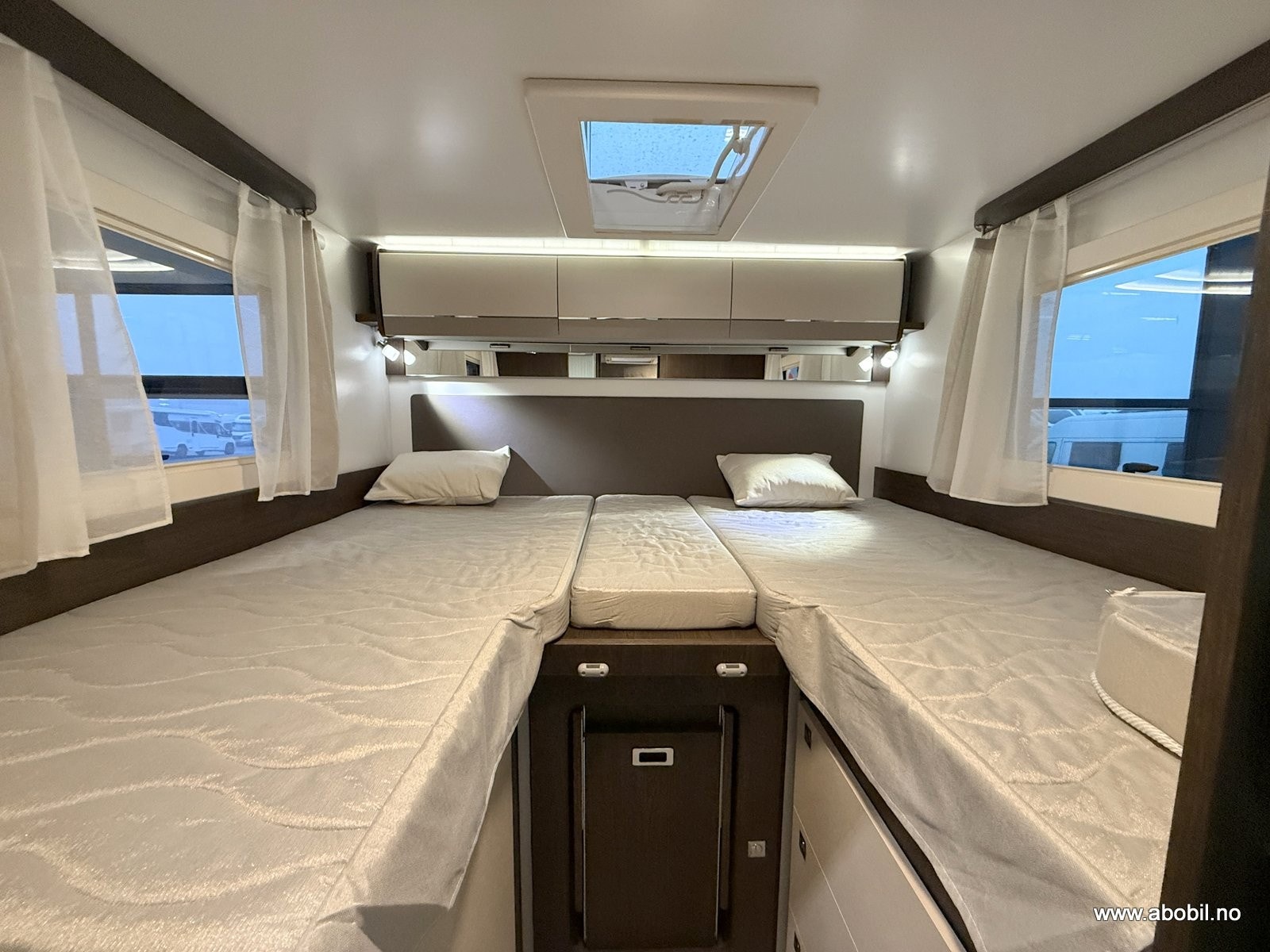 Modellen har to komfortable enkelt senger bak som enkelt kan gjøres om til én stor dobbeltseng.