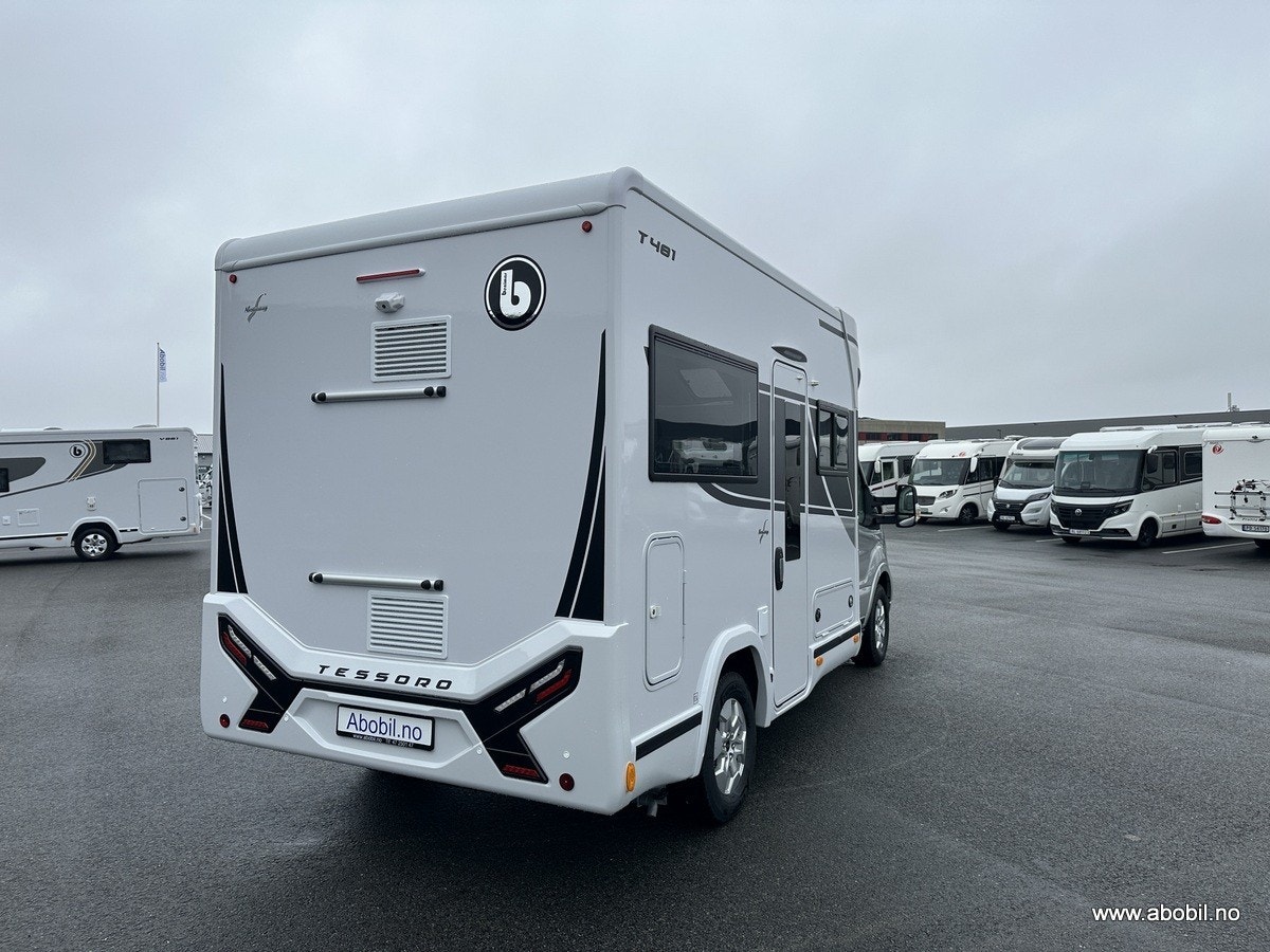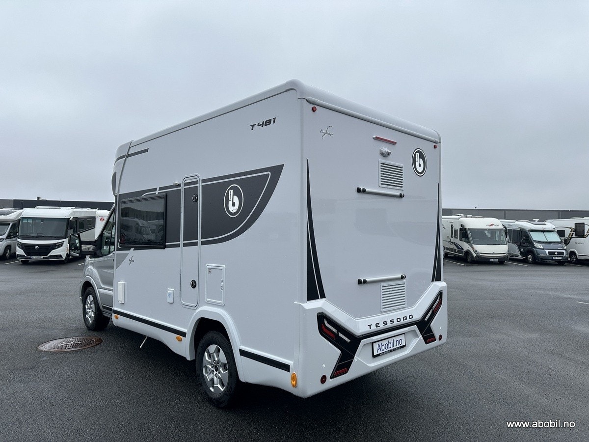 Tessoro 481 har en L-sofa sittegruppe med en stor face-to-face salong som skaper en åpen og innbydende følelse. Bobilen er registrert for fire personer og har en komfortabel, elektrisk senkeseng i taket, som kan senkes ned til sittehøyde. Dette gir en smart og romslig løsning hvor hele bodelen kan benyttes på dagtid.