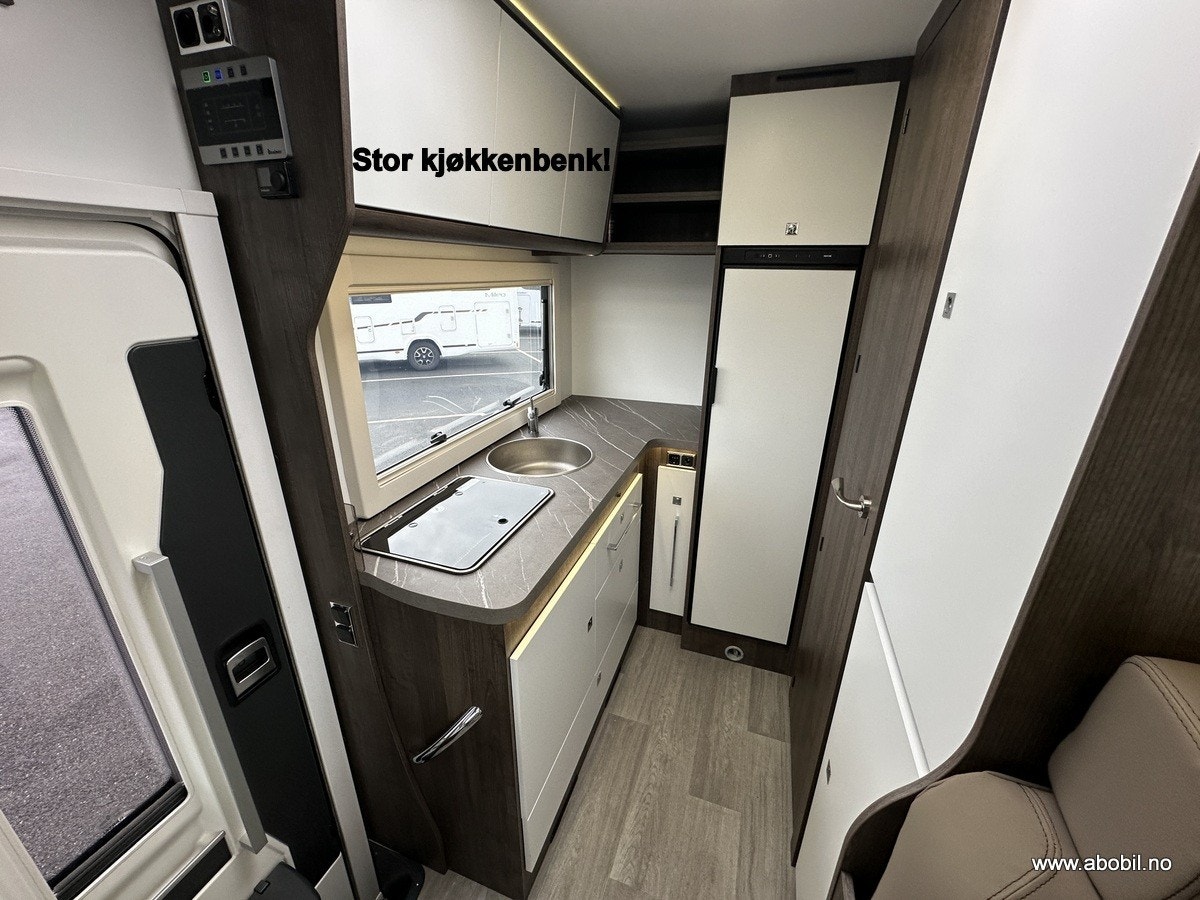 Denne bobilen kombinerer luksus og praktisk design, perfekt for både korte og lange reiser, uansett årstid. Med gjennomtenkt planløsning og høy komfort er dette et ideelt valg for dem som ønsker friheten til å reise med stil.