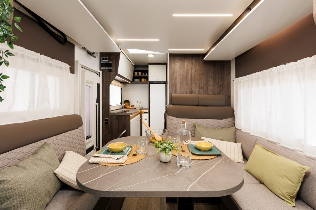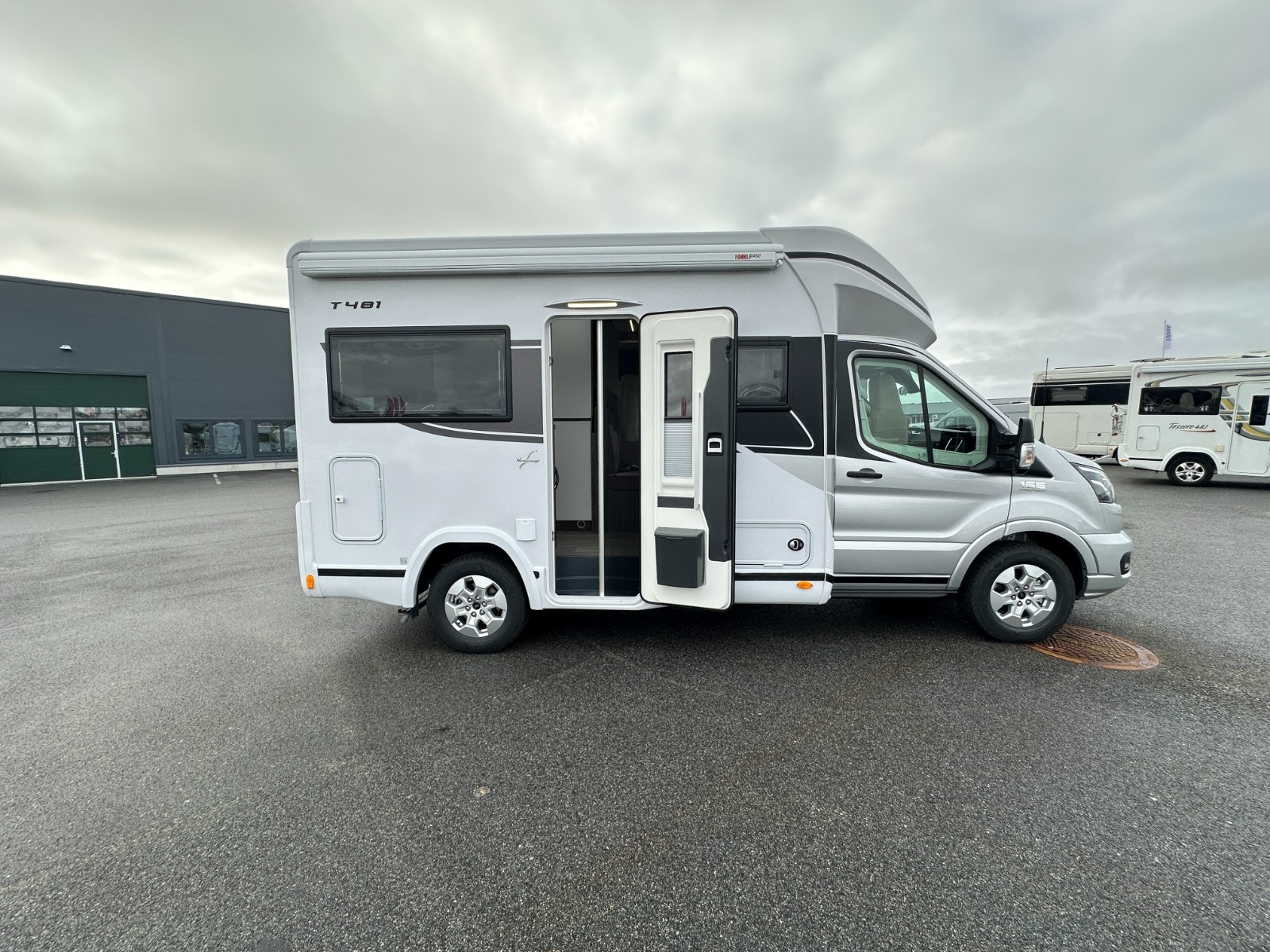 Tessoro 481 har en L-sofa sittegruppe med en stor face-to-face salong som skaper en åpen og innbydende følelse. Bobilen er registrert for fire personer og har en komfortabel, elektrisk senkeseng i taket, som kan senkes ned til sittehøyde. Dette gir en smart og romslig løsning hvor hele bodelen kan benyttes på dagtid.