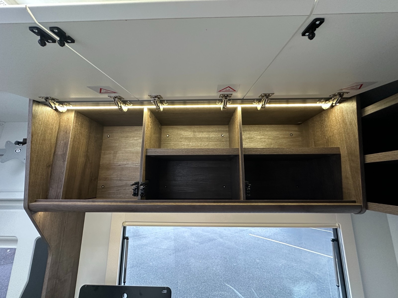 Aircondition i bildel, ryggekamera og LED-belysning sørger for komfort og sikkerhet under alle kjøreforhold. Bobilen er utstyrt med solcellepanel, 16-tommers aluminiumsfelger og flere USB- og 230V-uttak. Multifunksjonsratt, cruisekontroll og regulerbare pilotstoler gir en føreropplevelse tilsvarende en personbil.