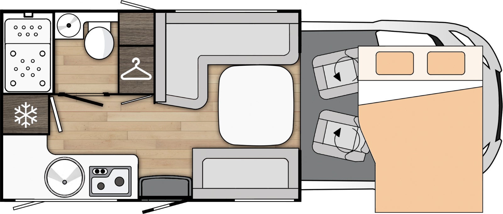 Denne bobilen kombinerer luksus og praktisk design, perfekt for både korte og lange reiser, uansett årstid. Med gjennomtenkt planløsning og høy komfort er dette et ideelt valg for dem som ønsker friheten til å reise med stil.