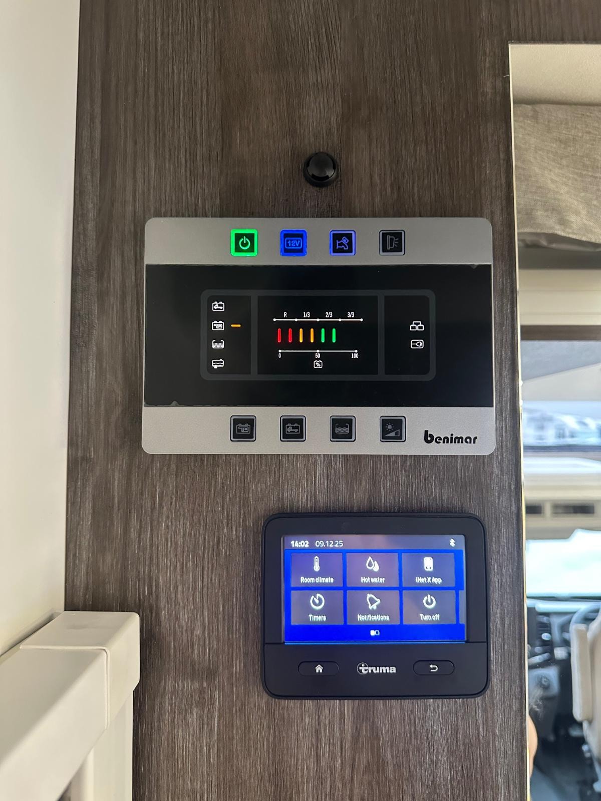 Denne bobilen har en Oppgradert TRUMA varmesystem 6000w gass og elektrisk oppvarming Opptil 1800w elektrisk element sammen med isolert og oppvarmet spillvannstank, oppvarmet frontrute og isolert innstig og en termomatte for førerhus.