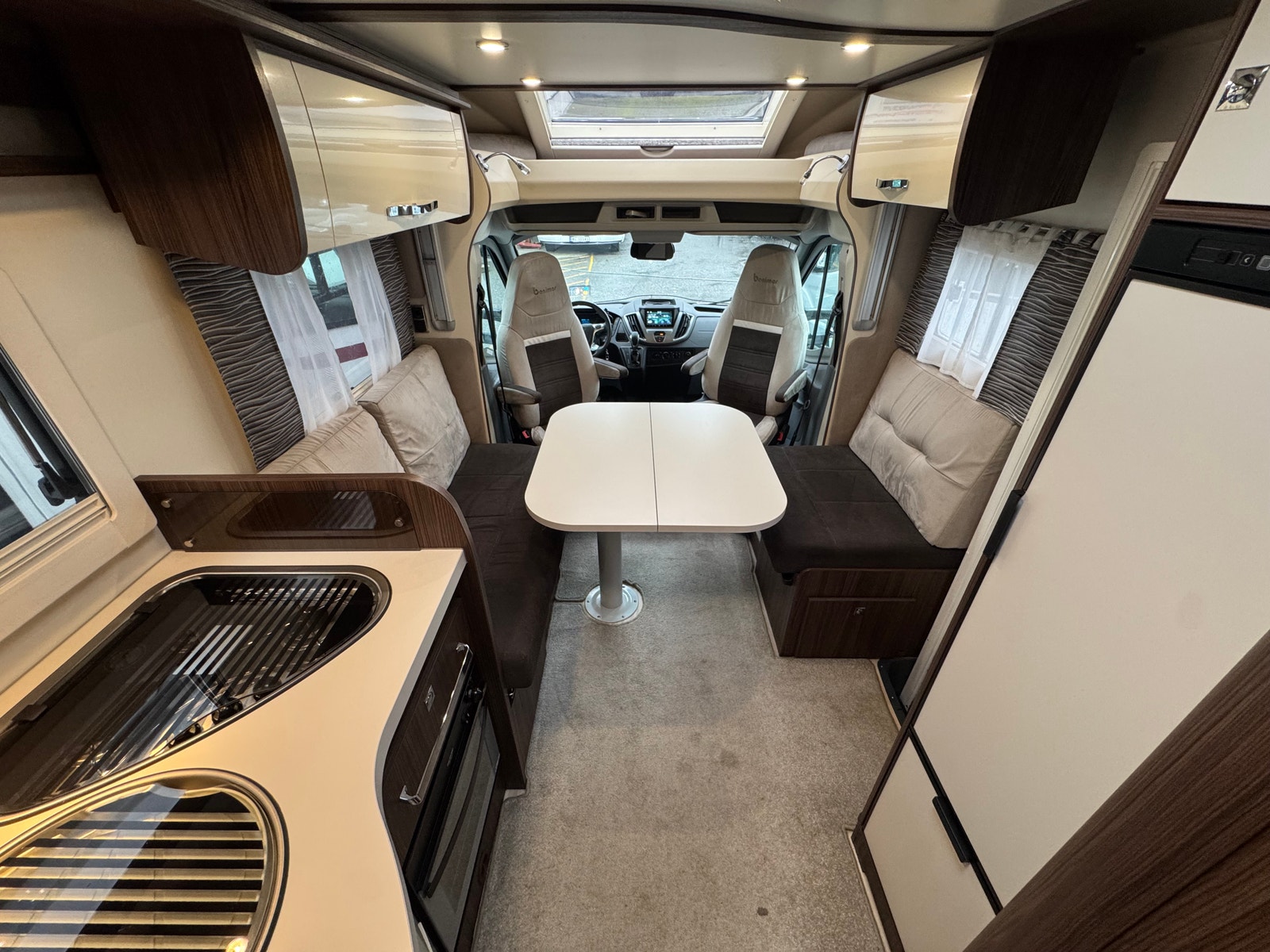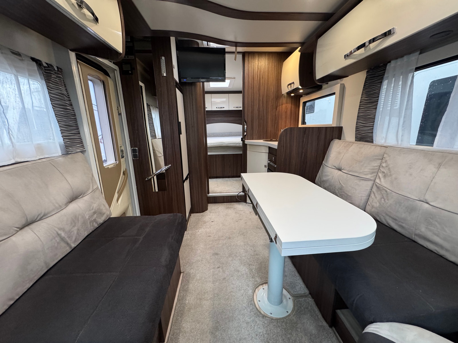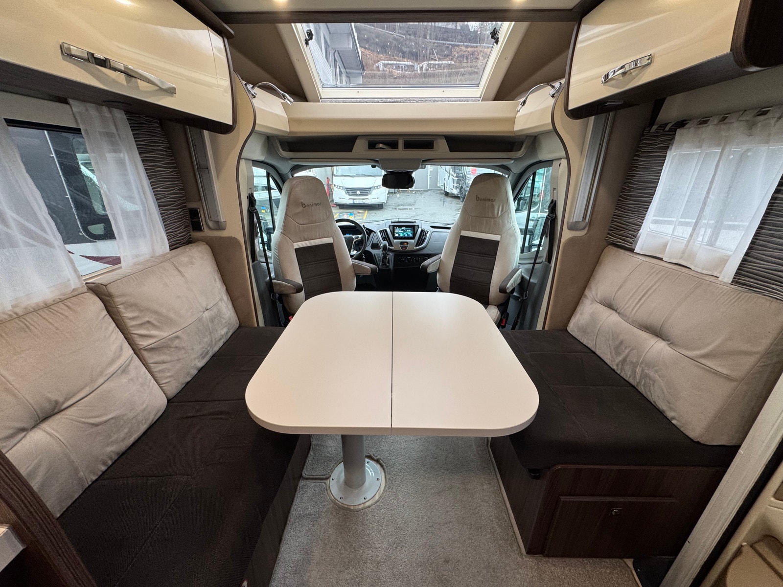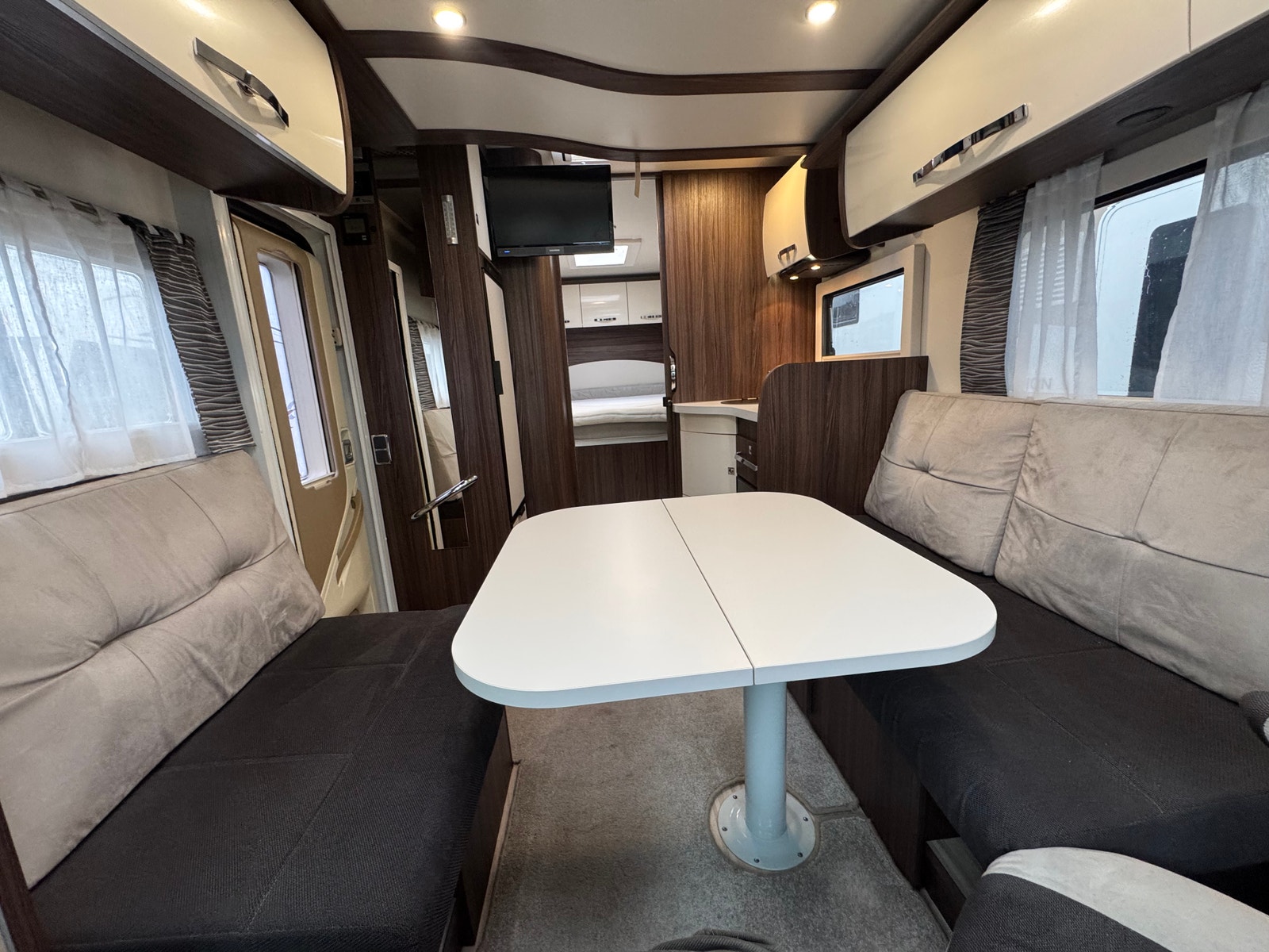 Face-2-Face løsningen i salong gjør at du får en meget romslig og luftig løsning, må sees! – Luftig, lys og trivelig salong. I sittegruppen kan du også få opp to seperate sitteplasser i kjøreretning, noe som gjør det behagelig for passasjerer å være med på tur. Det er og elektrisk senkeseng over salong.
