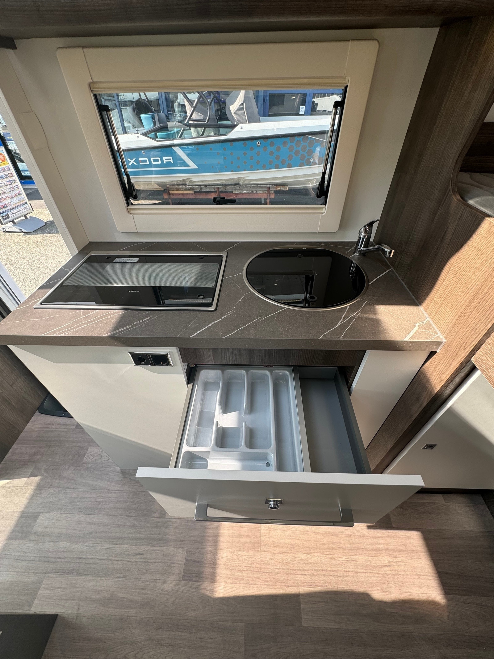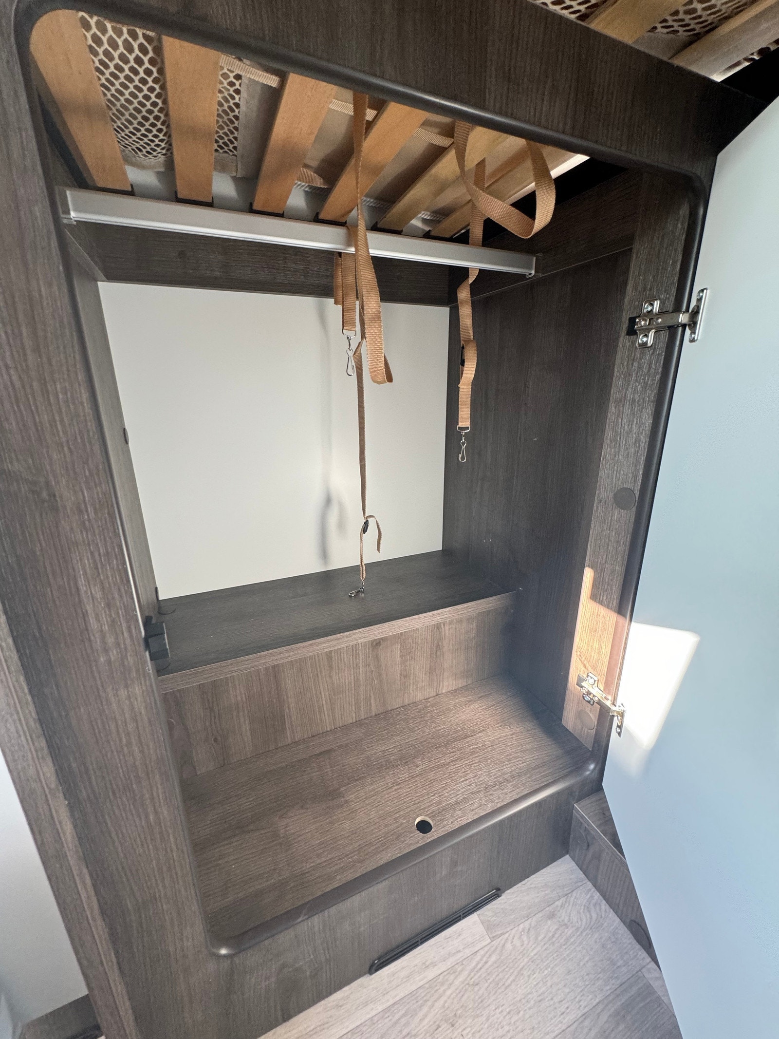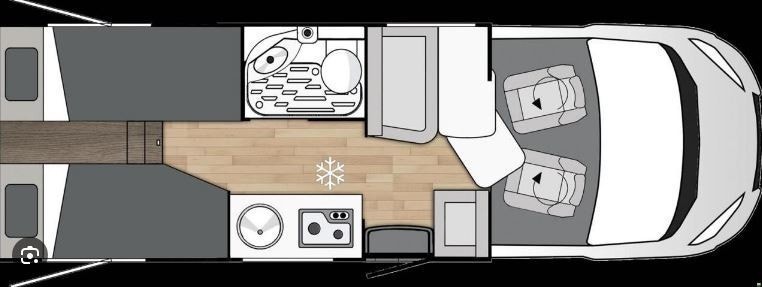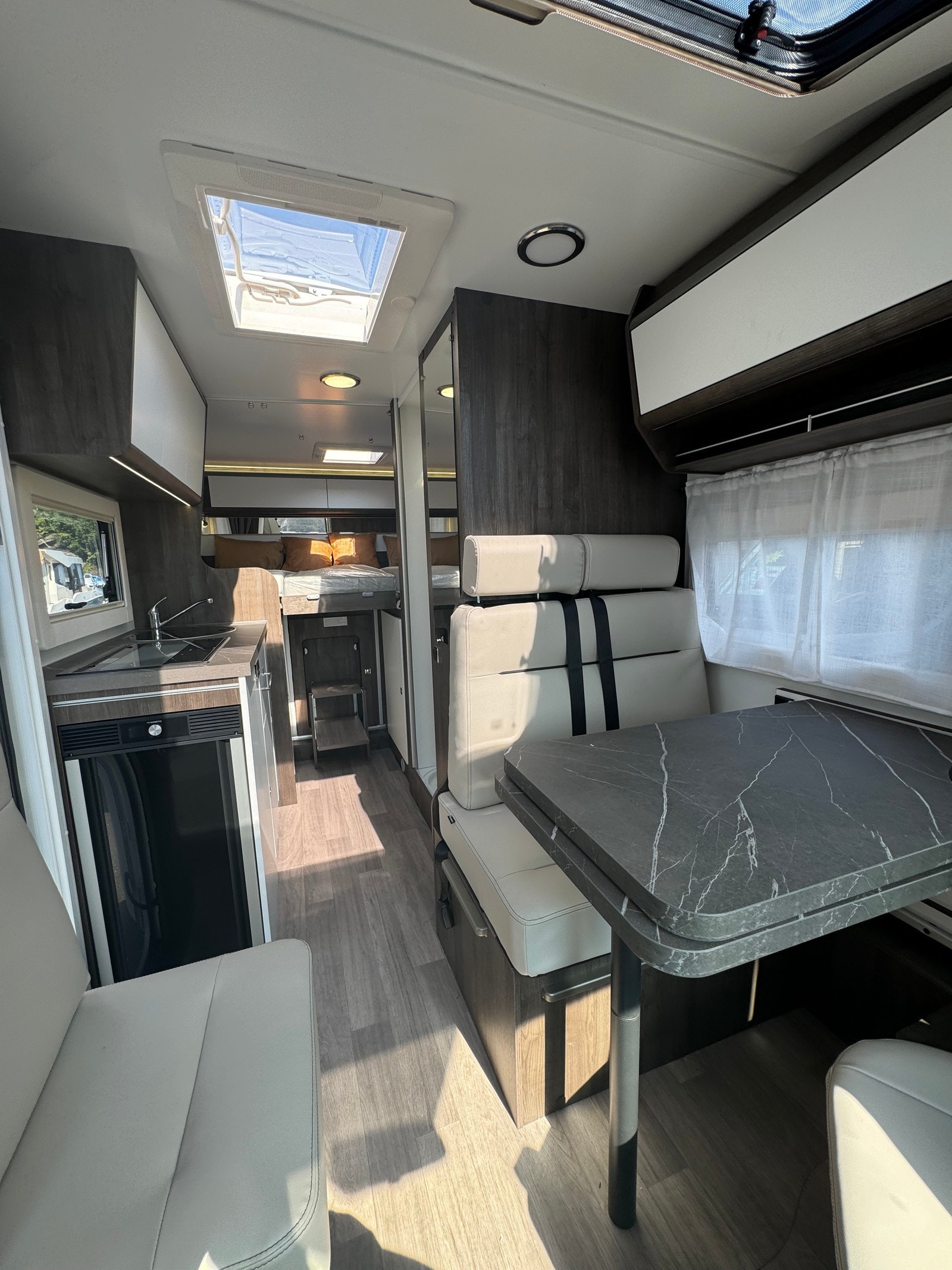Bobilen har to enkle senger, med mulighet for å lage om til stor dobbelseng. Stor garasje, her er det plass til sykler om ønskelig. Det er tilgang til garasjen fra innsiden av bilen.