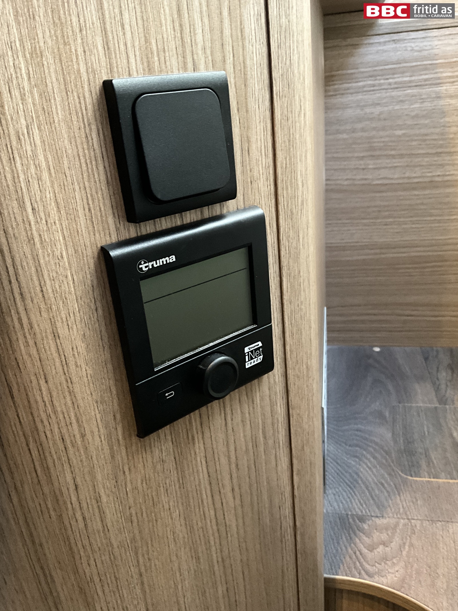 Bilen har Truma Combi (gass og elektrisk) med digitalt styringspanel. Gassalarm er også montert.