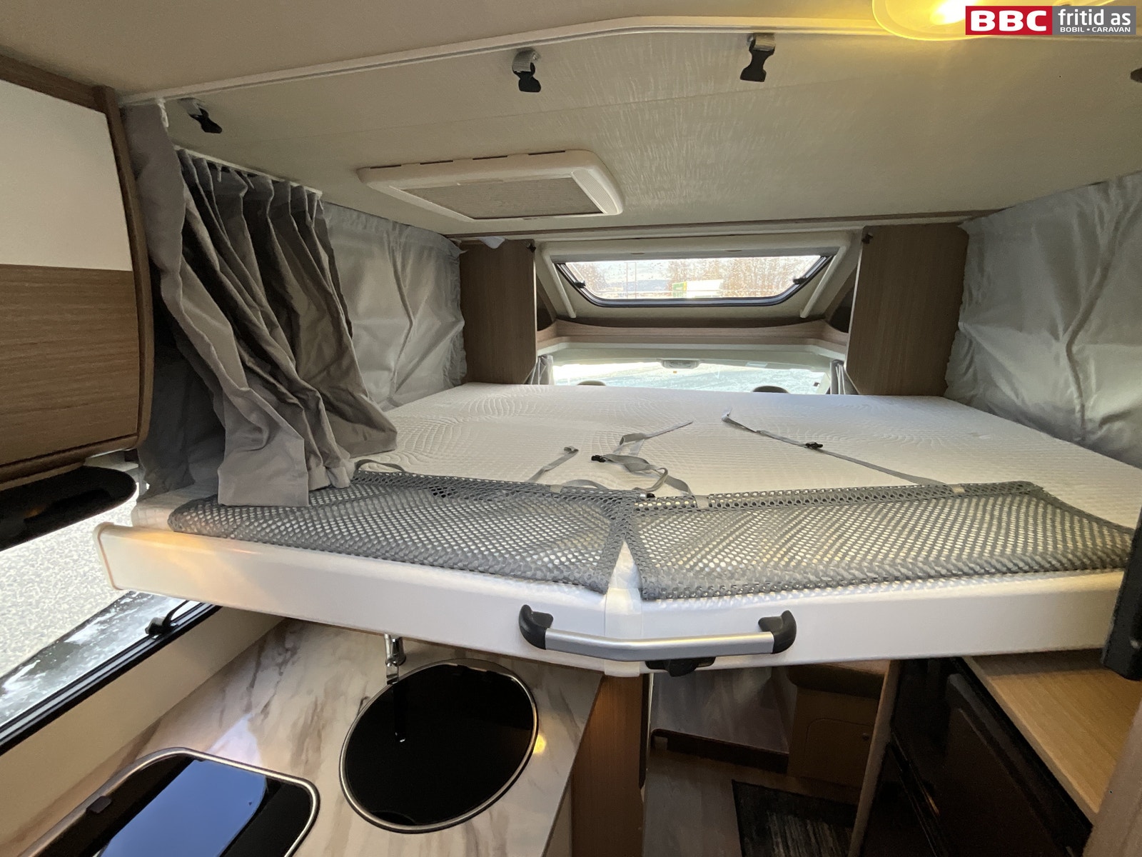 Dette er en veldig populær bobil, som har en praktisk løsning med både dobbetseng bak, og senkeseng foran. Bilen er pent behandlet både innvendig og utvendig. Bilen er en 2018-modell, med førstegangs registrert i 2020. Mere detaljer finner du her:
