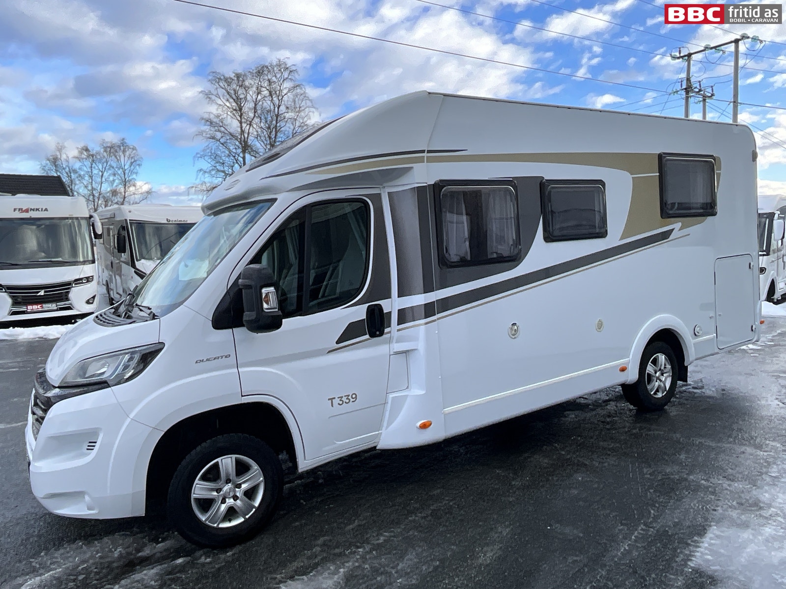 Dette er en veldig populær bobil, som har en praktisk løsning med både dobbetseng bak, og senkeseng foran. Bilen er pent behandlet både innvendig og utvendig. Mere detaljer finner du her: