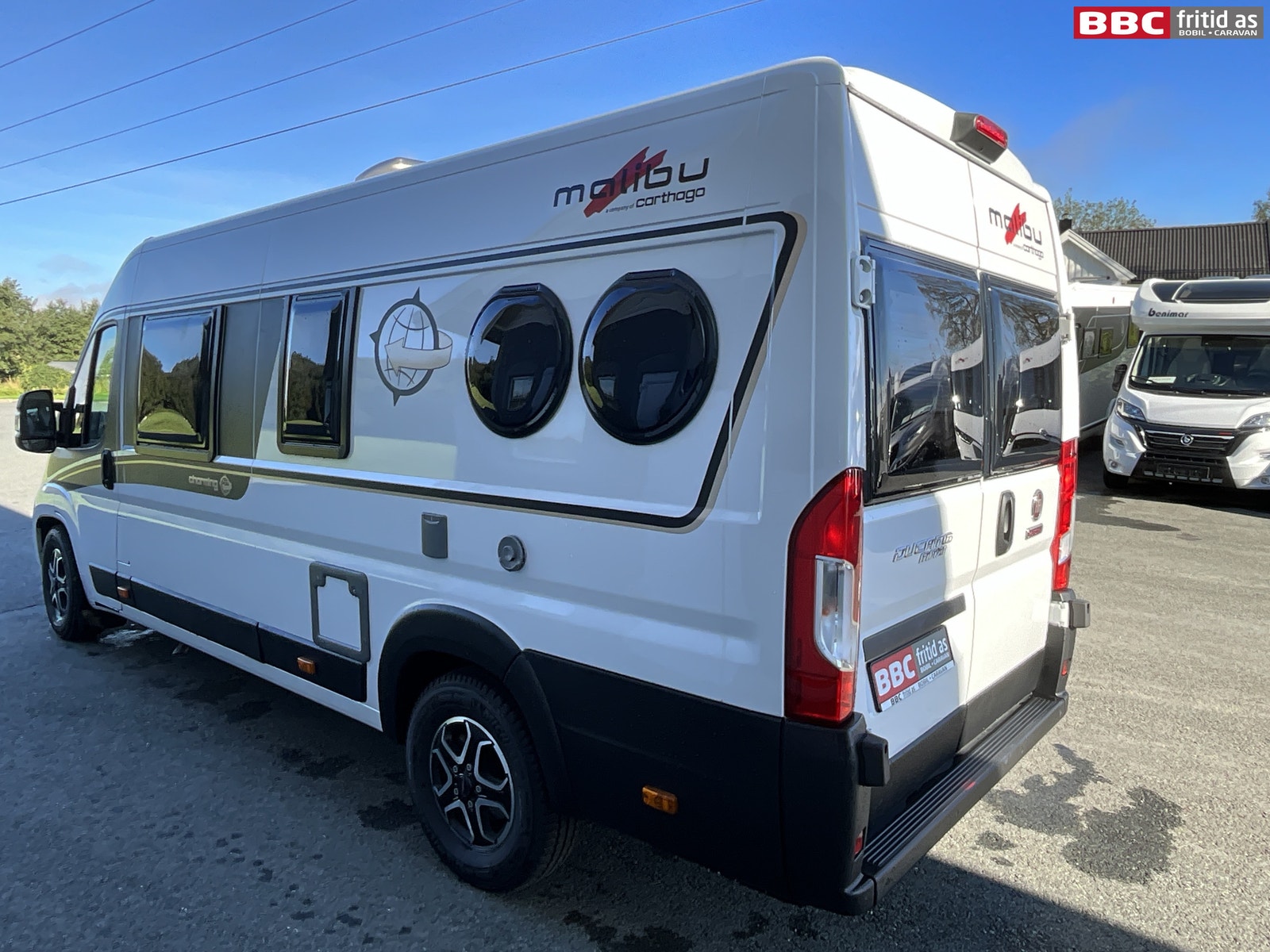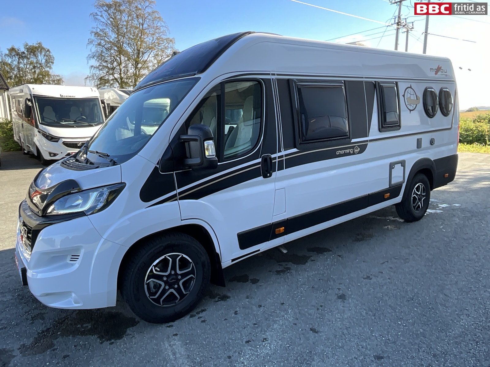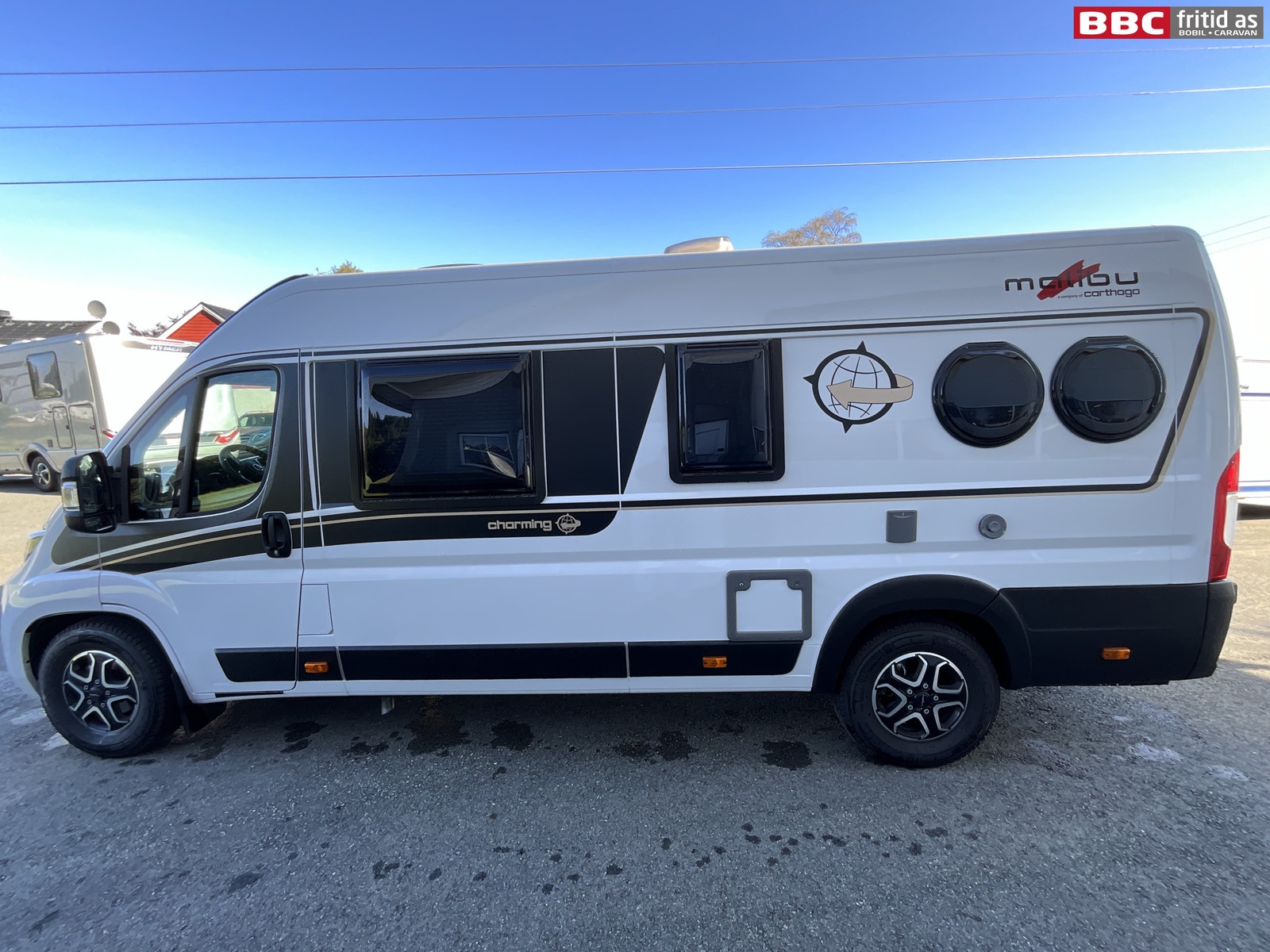 Vi har nå en Carthago Malibu 640 Charming Maxi klar for umiddelbar levering. Hvit bil med sorte detaljer og 4 runde vinduer. Her er litt mere fakta om bilen: