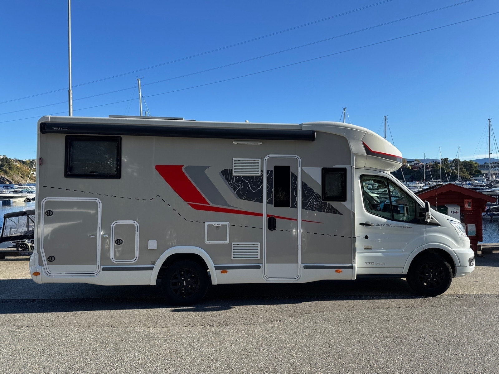 Bergen Marine har nylig fått inn en 2023 modell Challenger 377. Kun gått 7500 km. 2 enkle senger bak + face-2-face salong.  Flott bobil med smarte planløsninger!