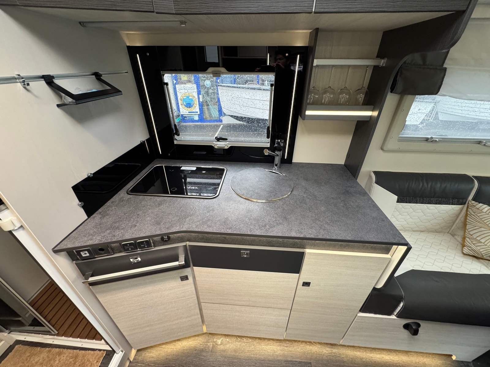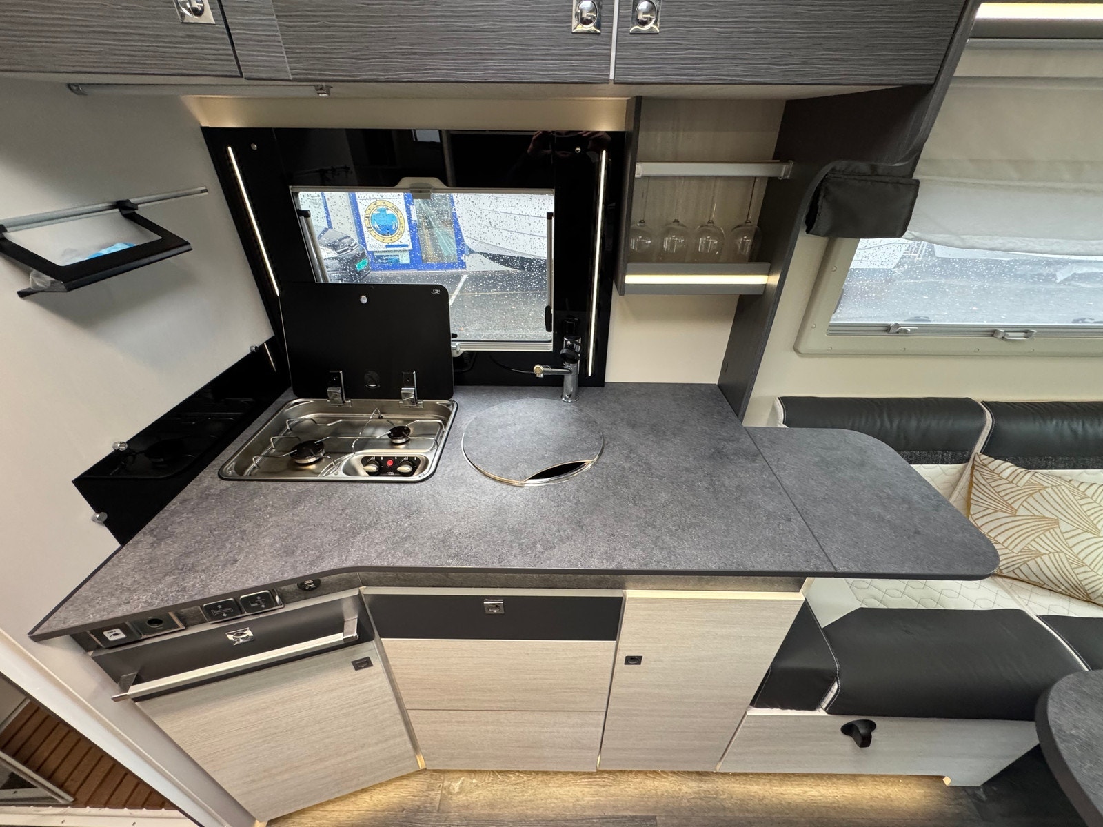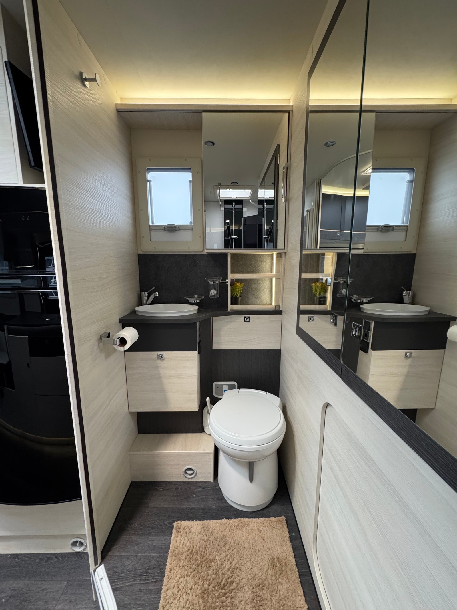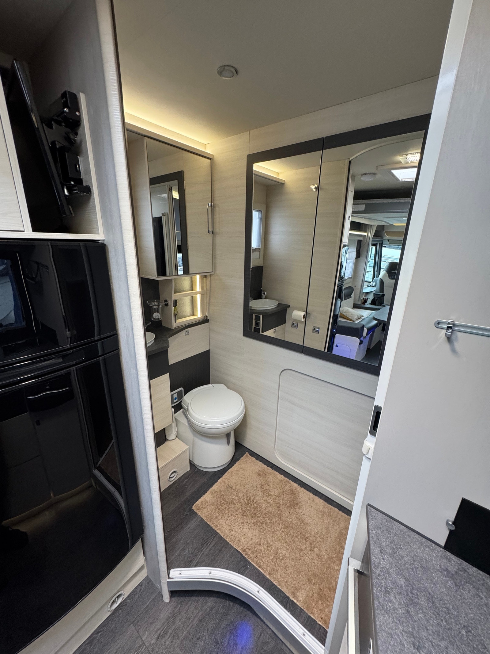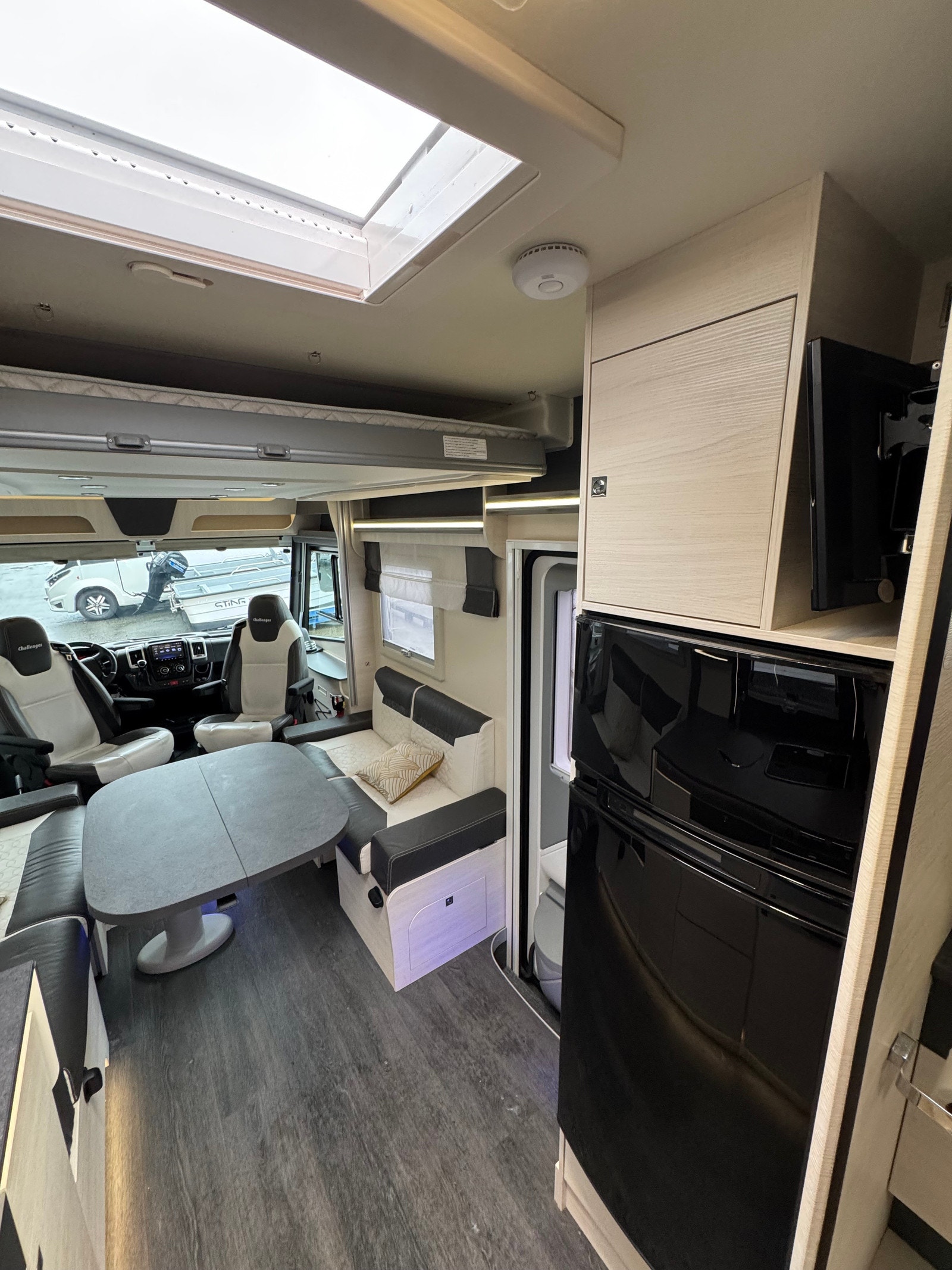 Dette er nok en av våre mest romslige salonger, av bobiler vi har for salg hos oss. Må oppleves!  Stoler i front kan snues rundt om ønskelig. 2 passasjerstoler som kan vippes opp etter behov, disse er også ustyrt med iso-fix.