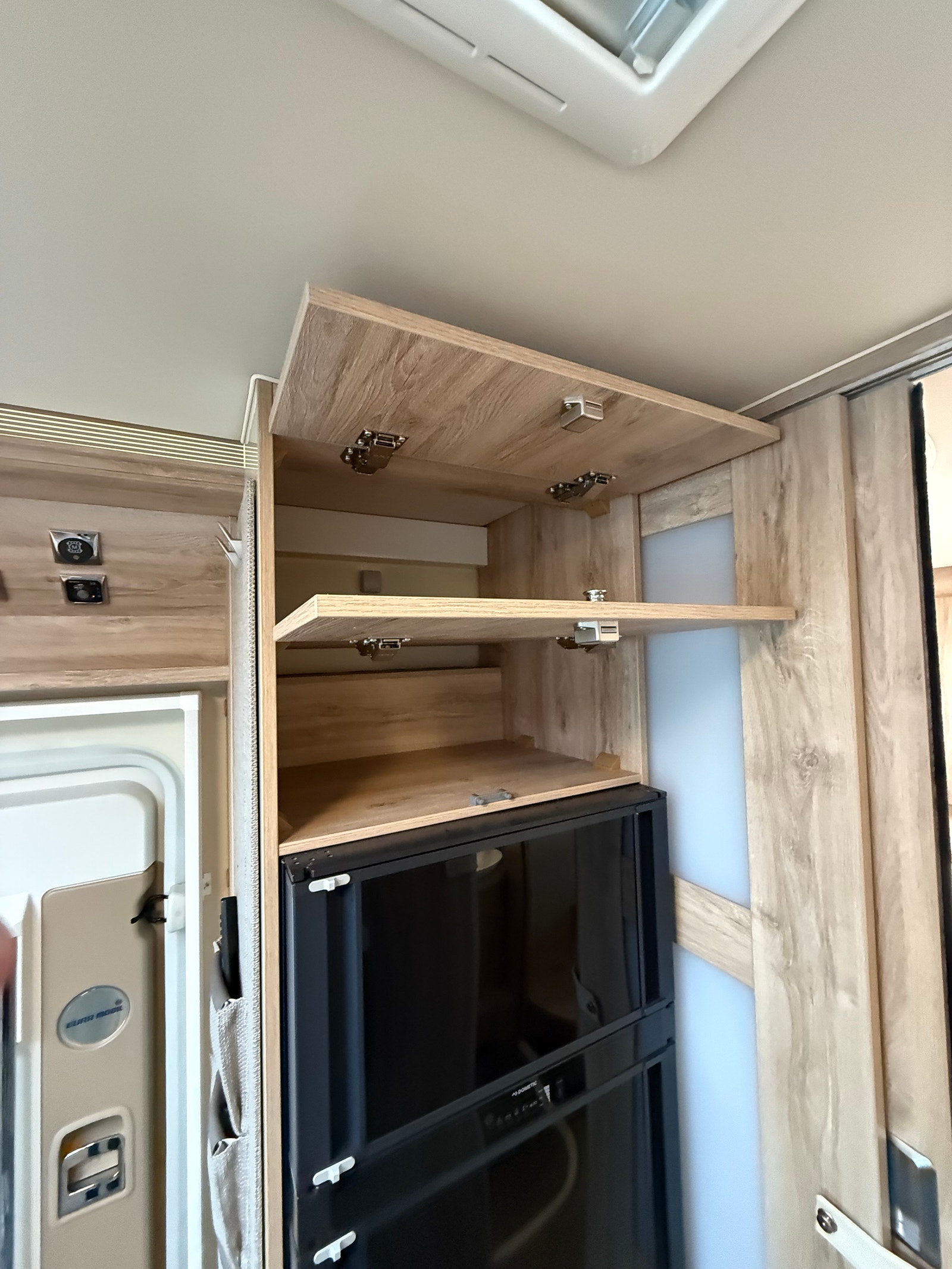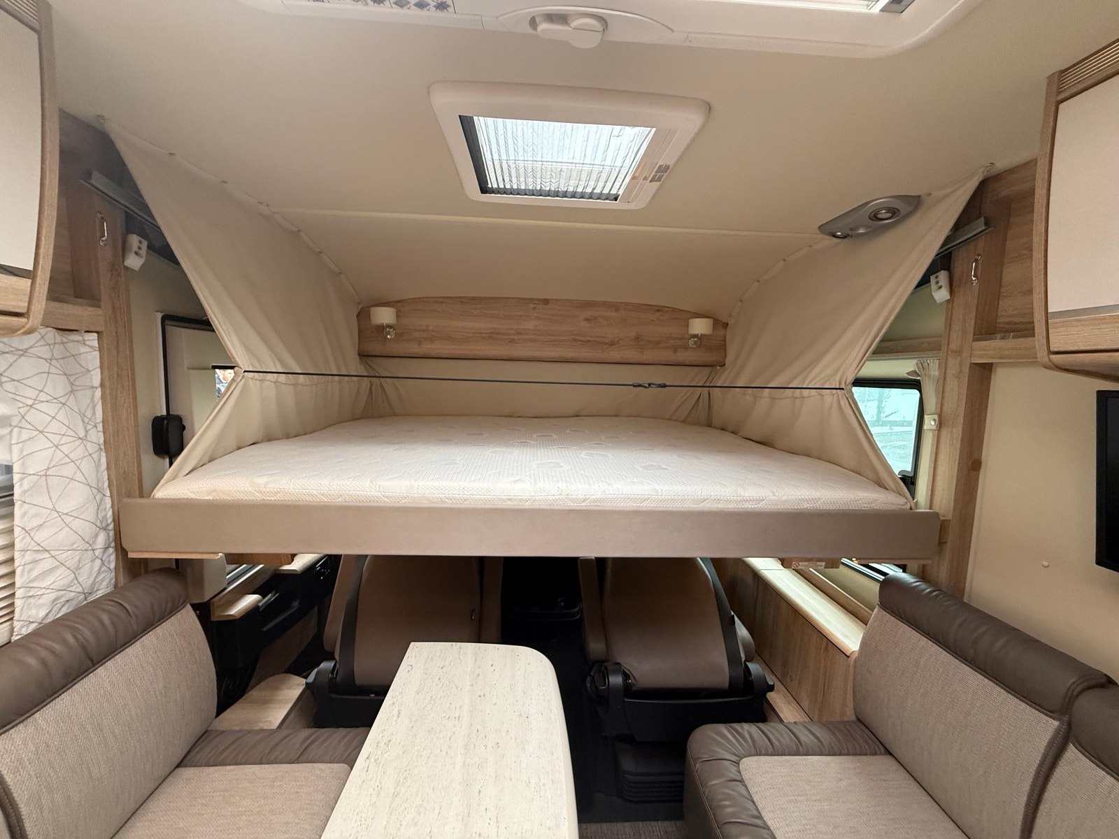 Perfekt bobil for opptil 4 personer, det er to pilotstoler gjemt under salong som kan brukes ved behov.