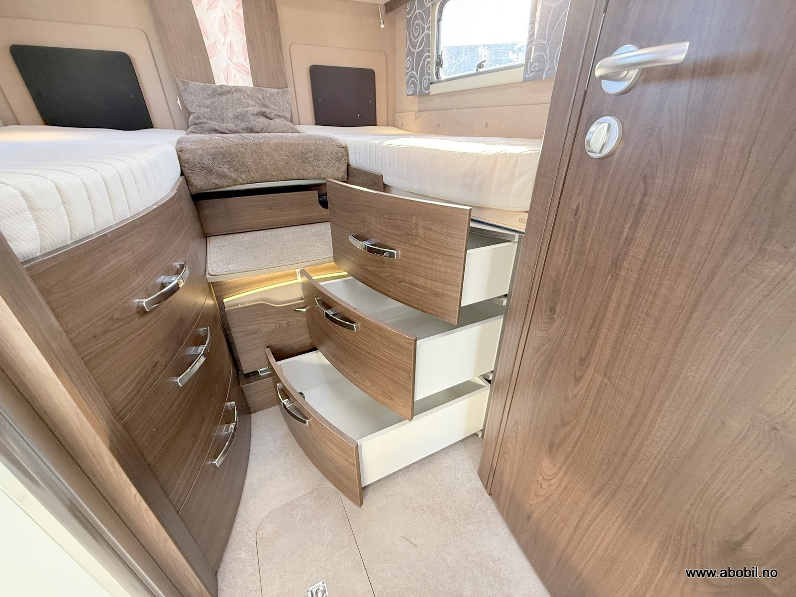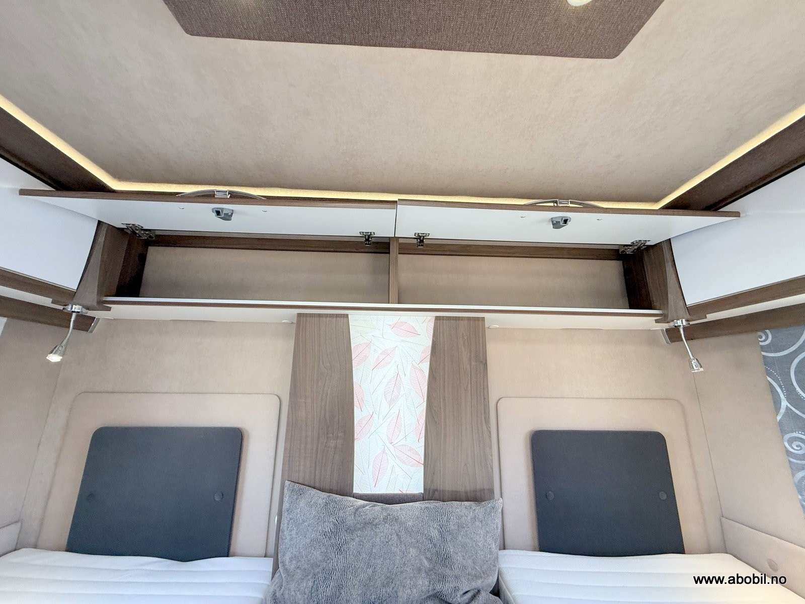 Bakerst i bilen finner du to komfortable enkeltsenger med trinn opp og rikelig oppbevaring under og over.
