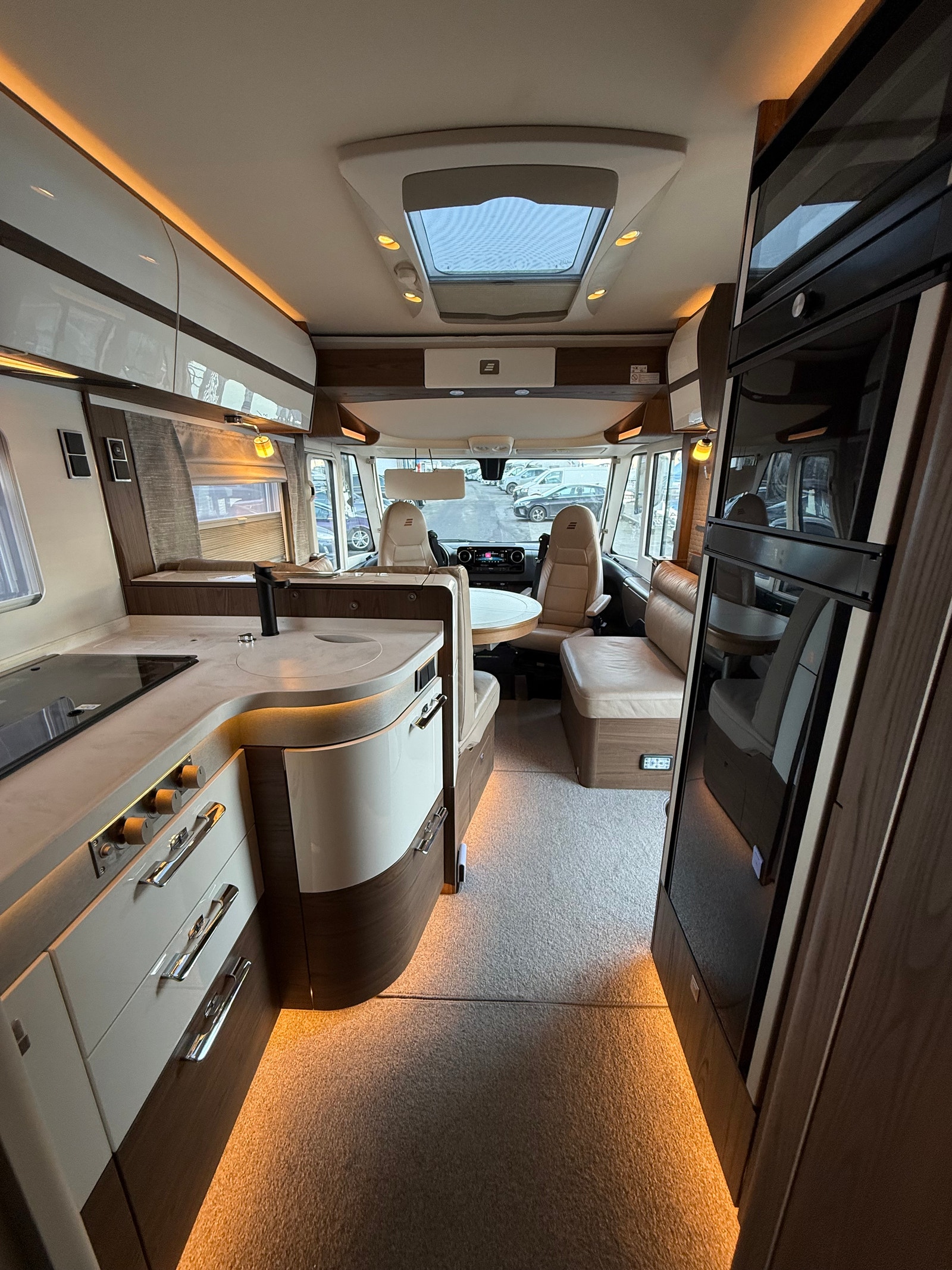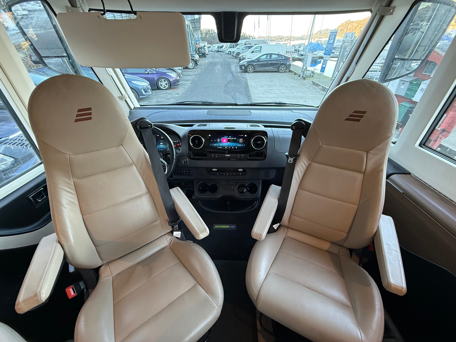 Det øyeblikket du setter deg i de ergonomiske pilotstolene og ser utover den enorme panorama-frontruten, forstår du at dette ikke bare er en bobil – det er et førsteklasses luksuskjøretøy.