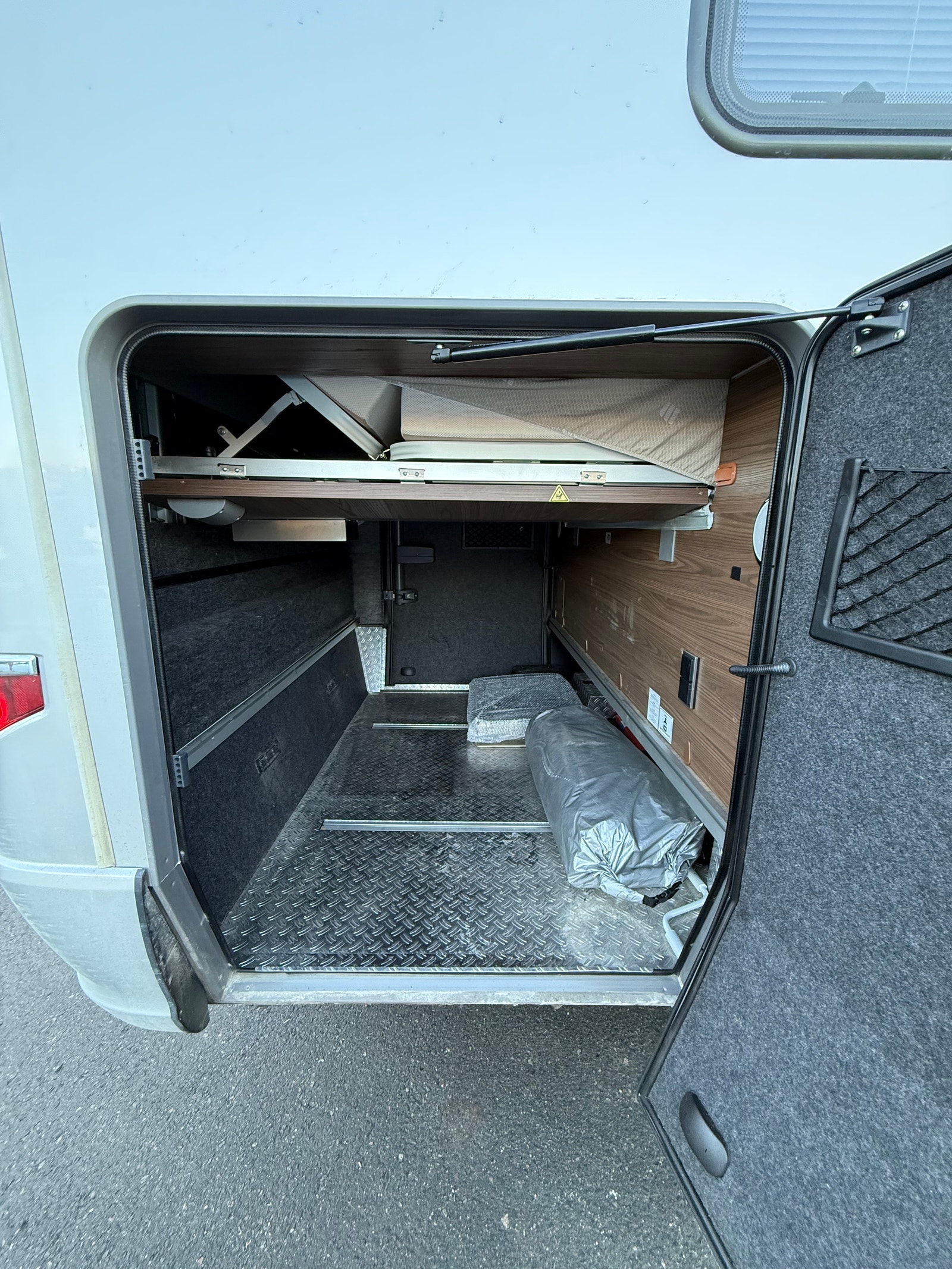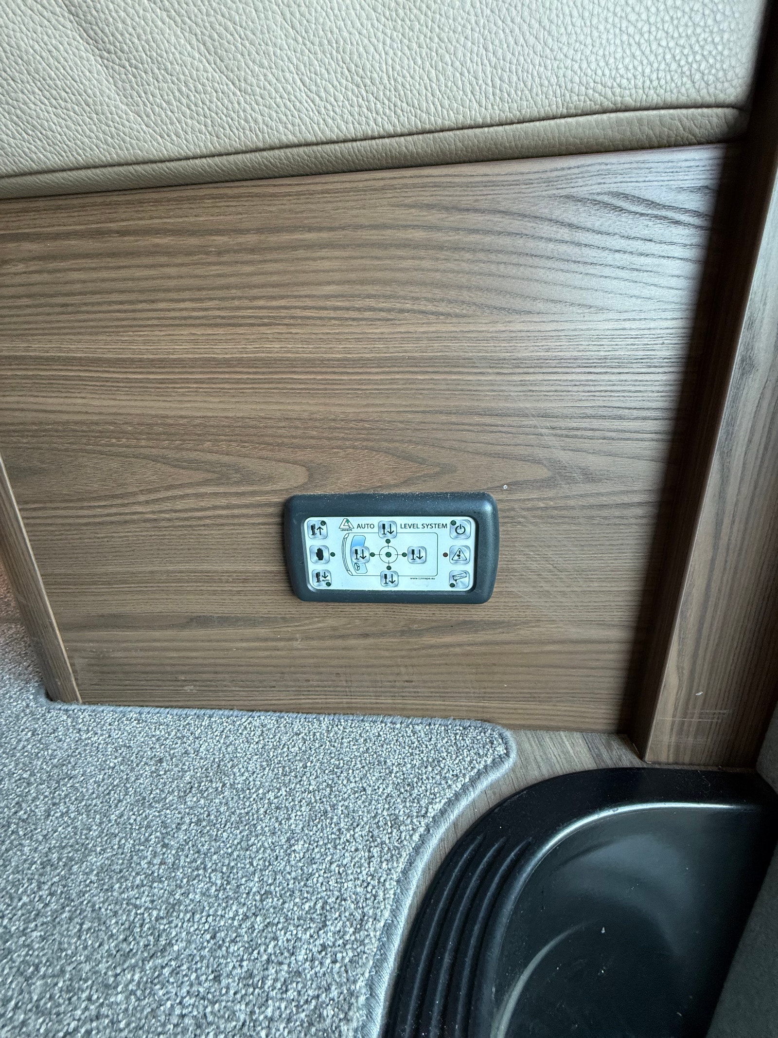 Ankomsten – Enkelt og elegant Når dagens etappe er over, begynner den virkelige magien. Glem stresset med manuelle kiler og ujevnt underlag. Med et enkelt trykk på mobiltelefonen aktiverer du de hydrauliske støttebeina. Du merker et lite løft, og sekunder senere står den 9 meter lange kjempen fjellstøtt og perfekt vatret – helt automatisk.
