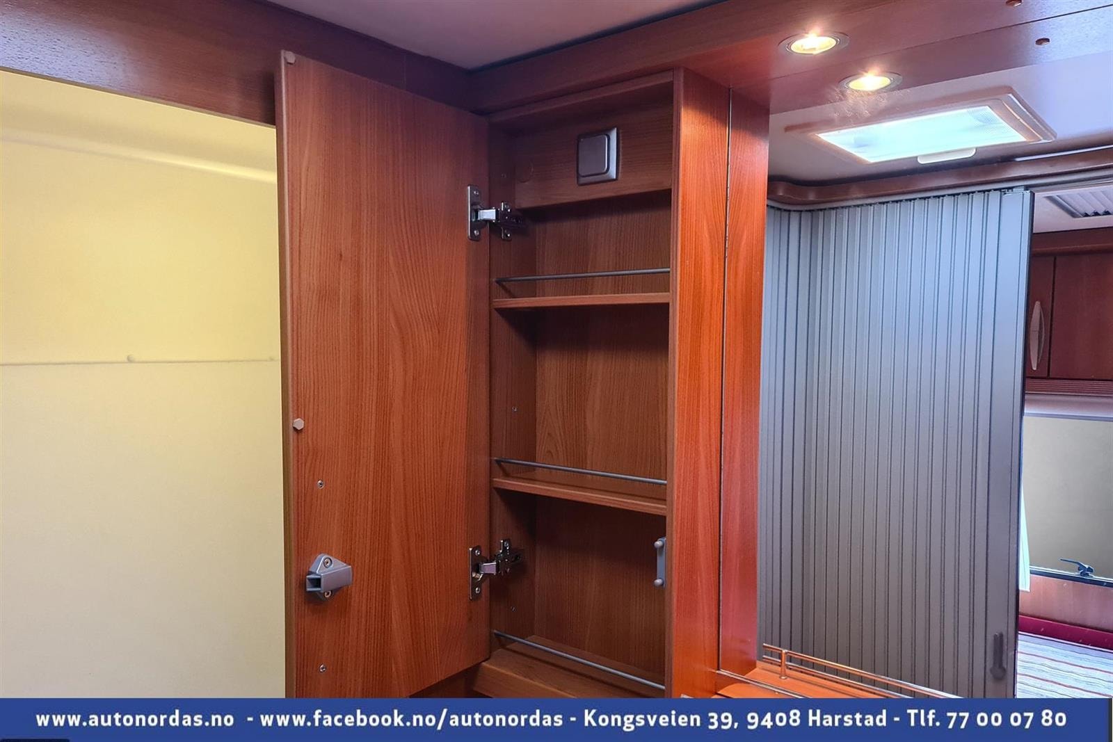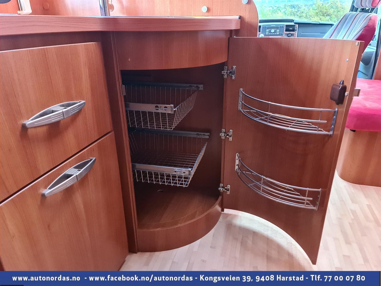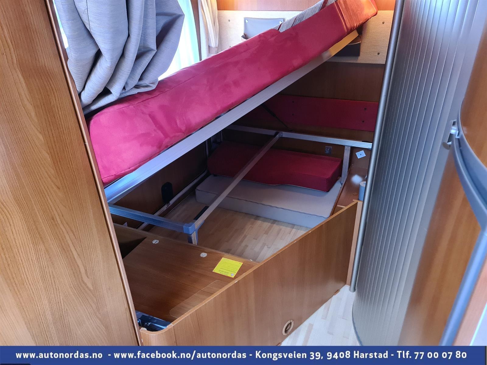 Svært godt med skap for oppbevaring og tilgang til lasterom under sengen innenfra.