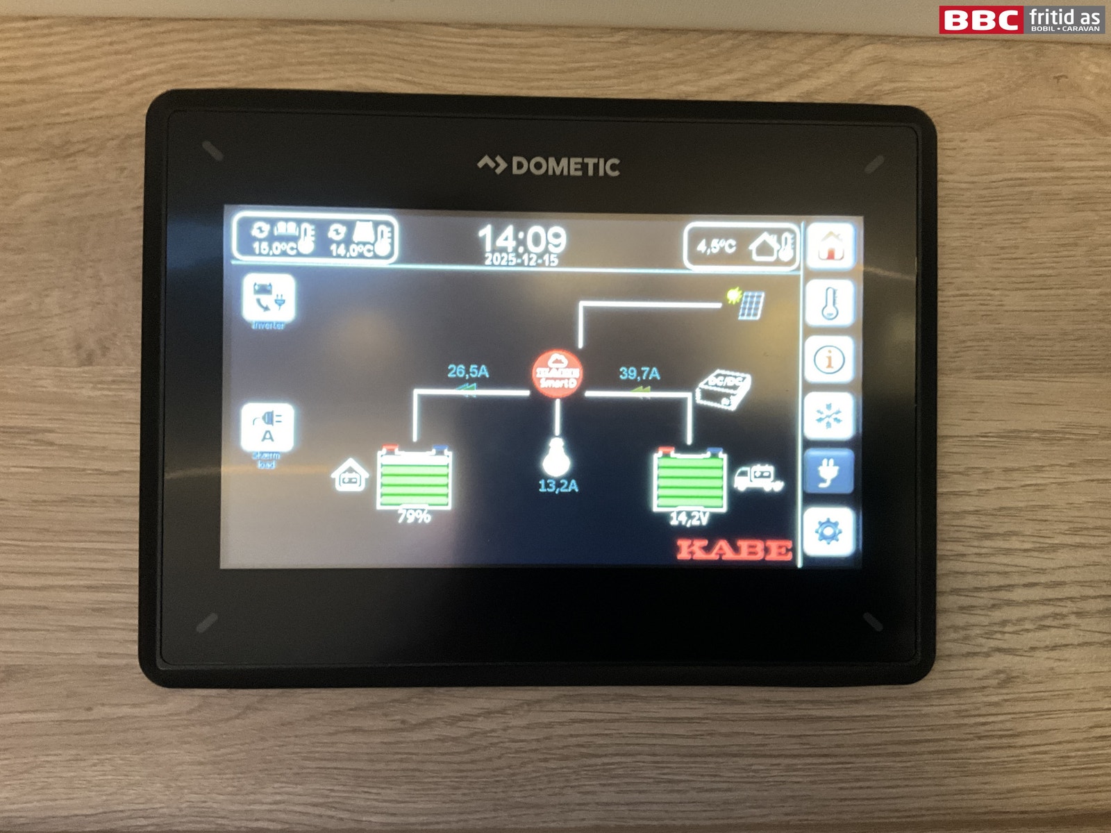 Lithium-batteri på 210A, 2 stk solcellepanel og Dometic Inverter på 3000W.