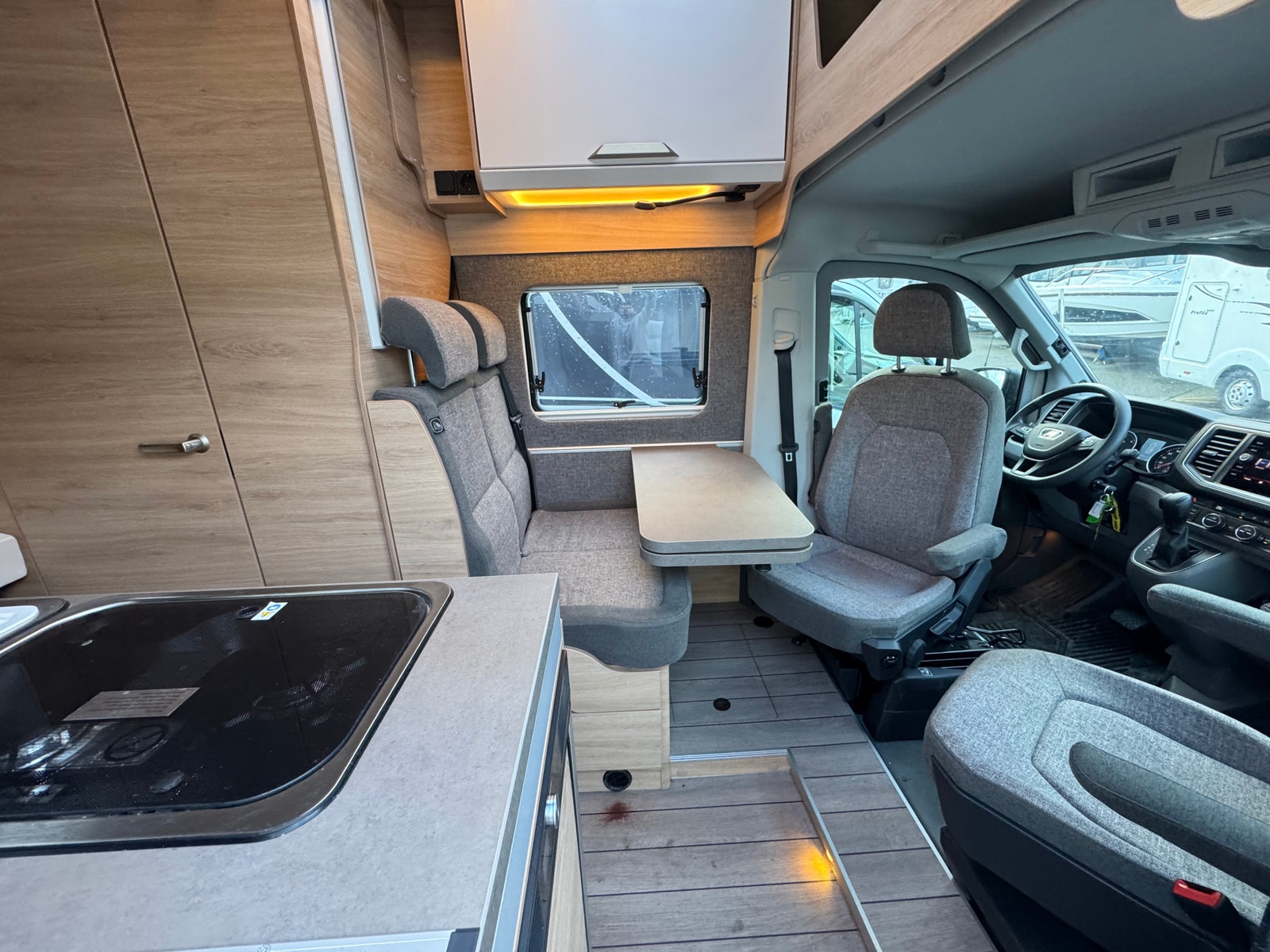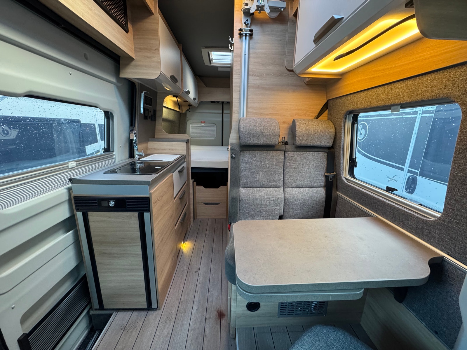 Bobilen er registrert for 4 personer, isofix, mulighet for å utvide bord med utrekkbar plate.
