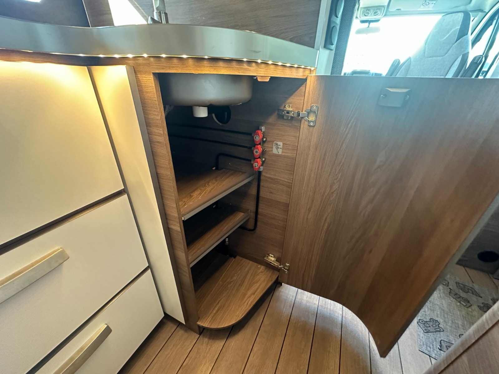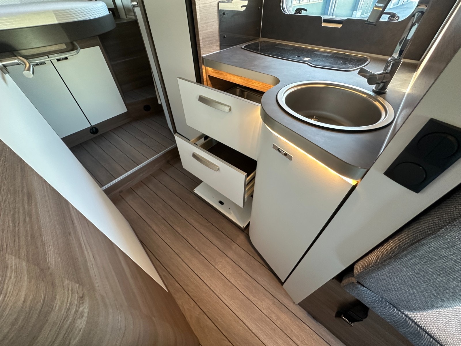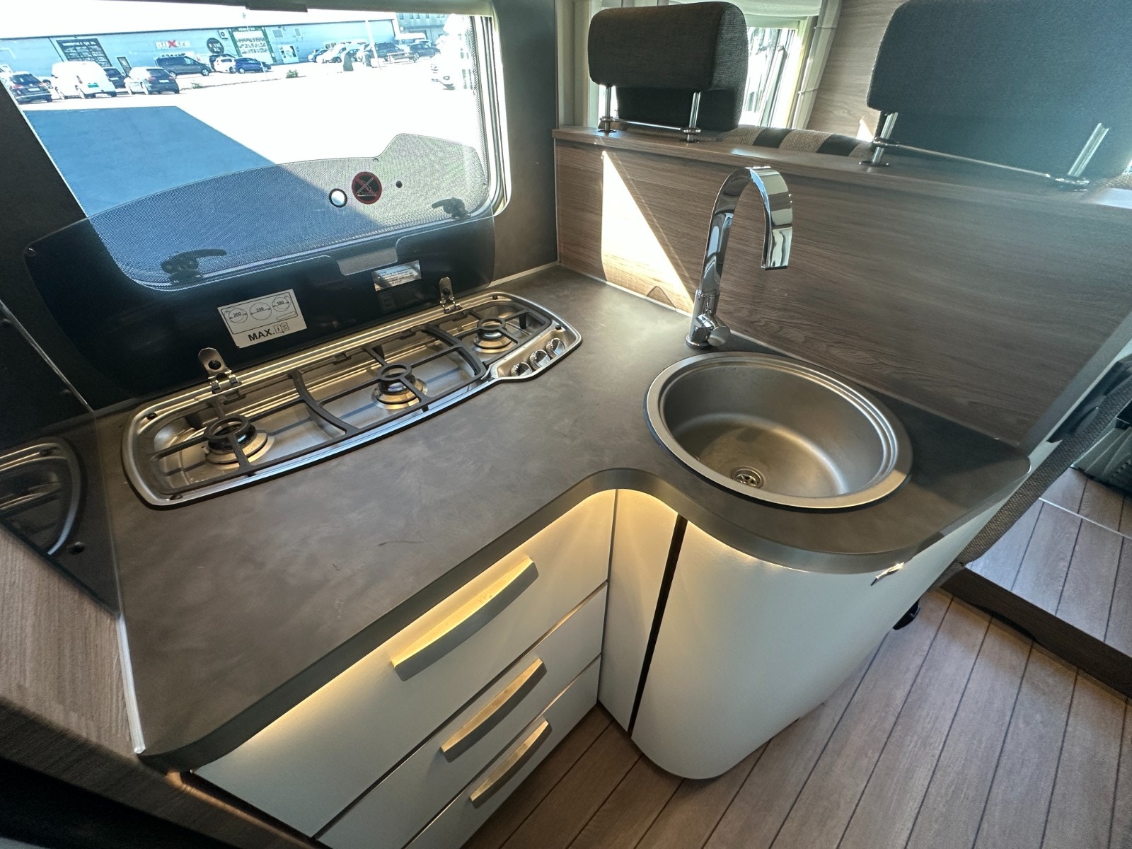 Alt belysning i bodelen er i energibesparende moderne LED løsning. Ellers i salongen/førerdel finner man store vinduer samt stort panorama takluke. Denne kan enkelt åpnes. Alle vinduer og takluker har selvsagt myggnetting og formørknings plissé/Rollo gardiner.