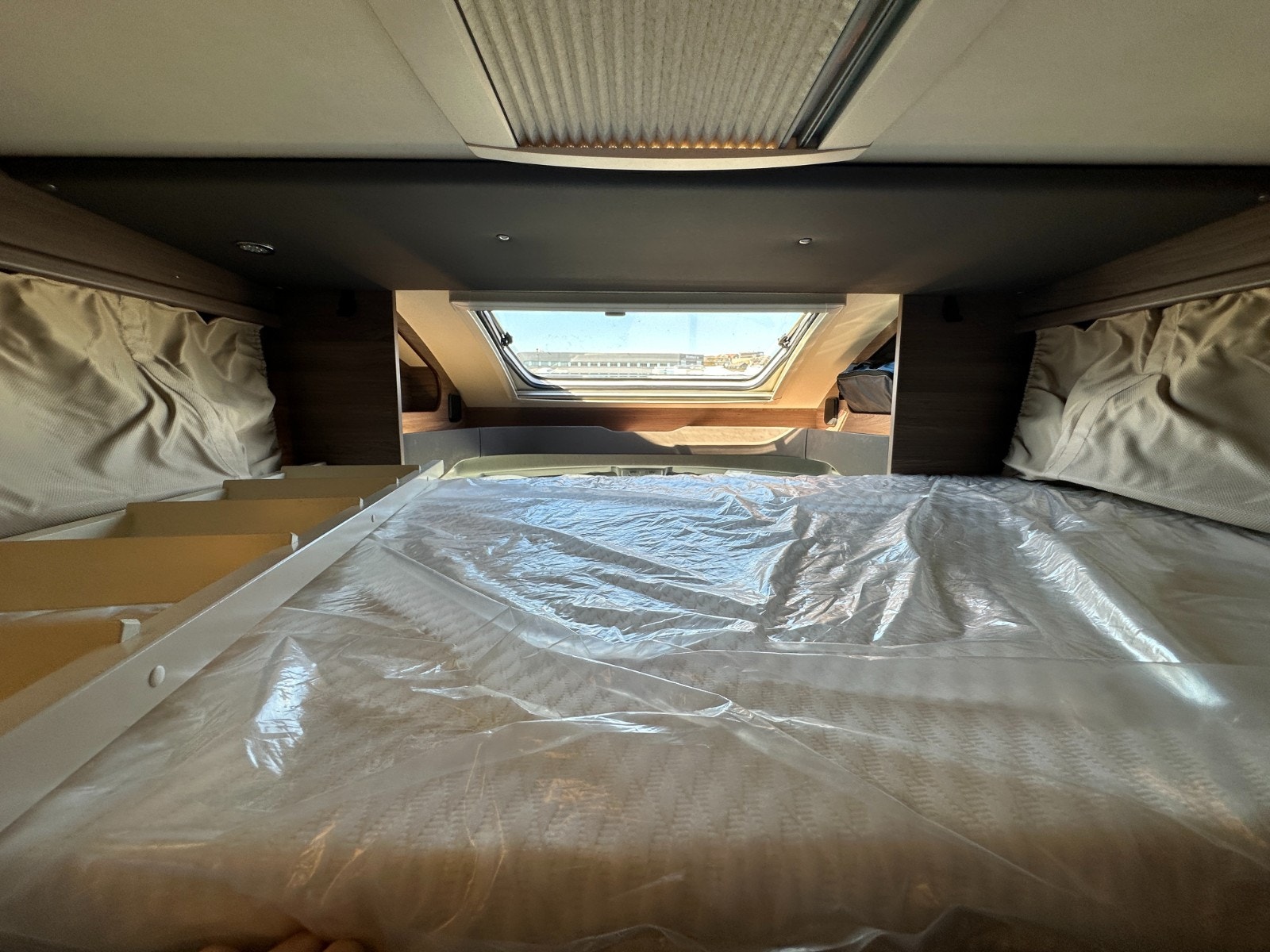Det er store vinduer på hver side av sengen og takluke som alle kan åpnes for god utlufting.