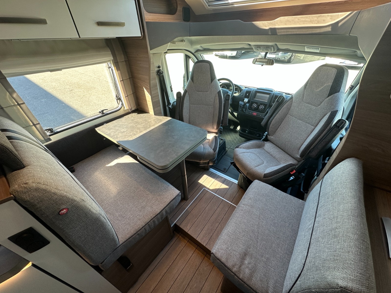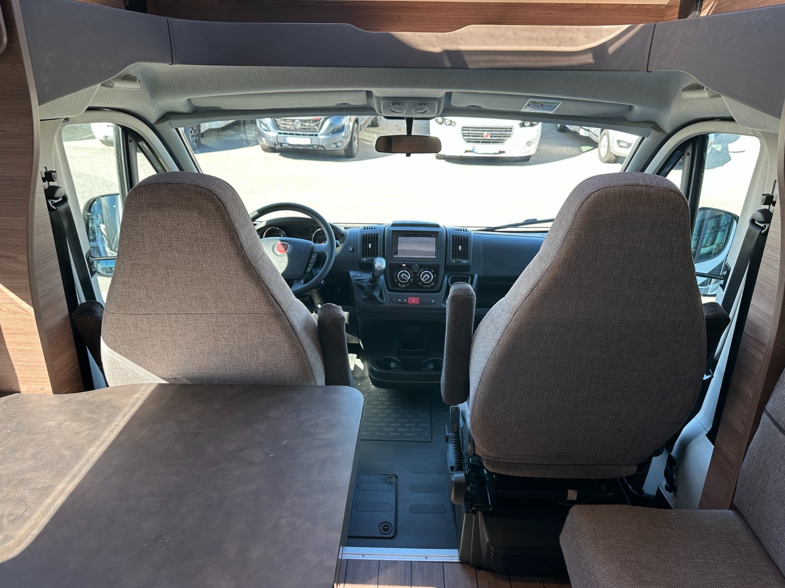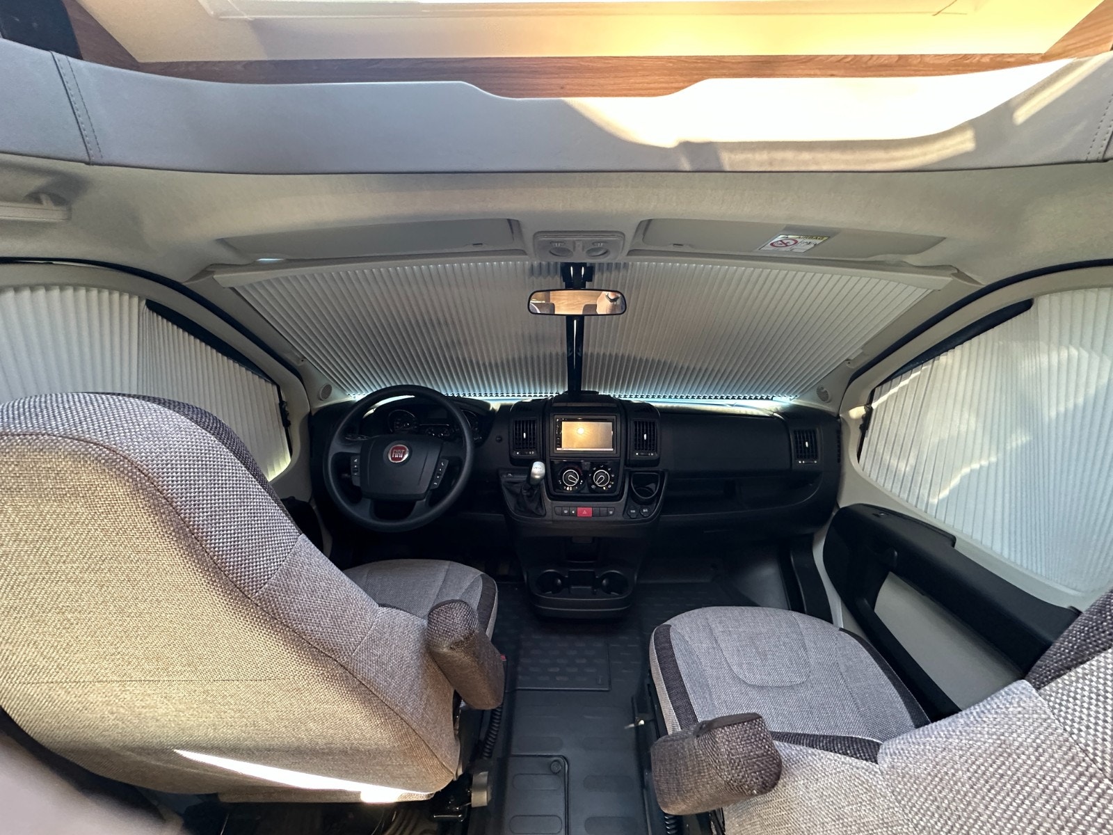 Førerdelen har også Ryggekamera, multifunksjonsratt, formørkning i alle vinduer, Regulerbare pilotstoler med armlene, cruisekontroll og regulerbart ratt. Denne bobilen oppleves nærmest som en flott personbil.