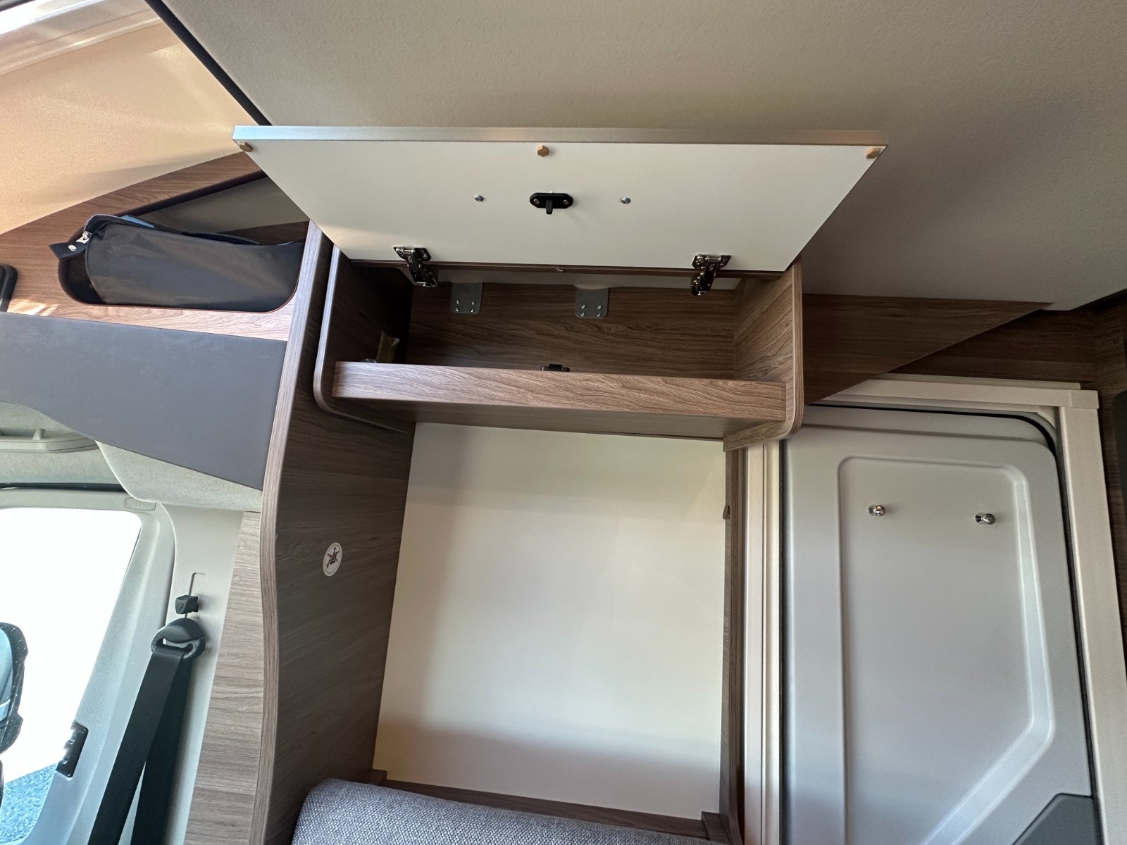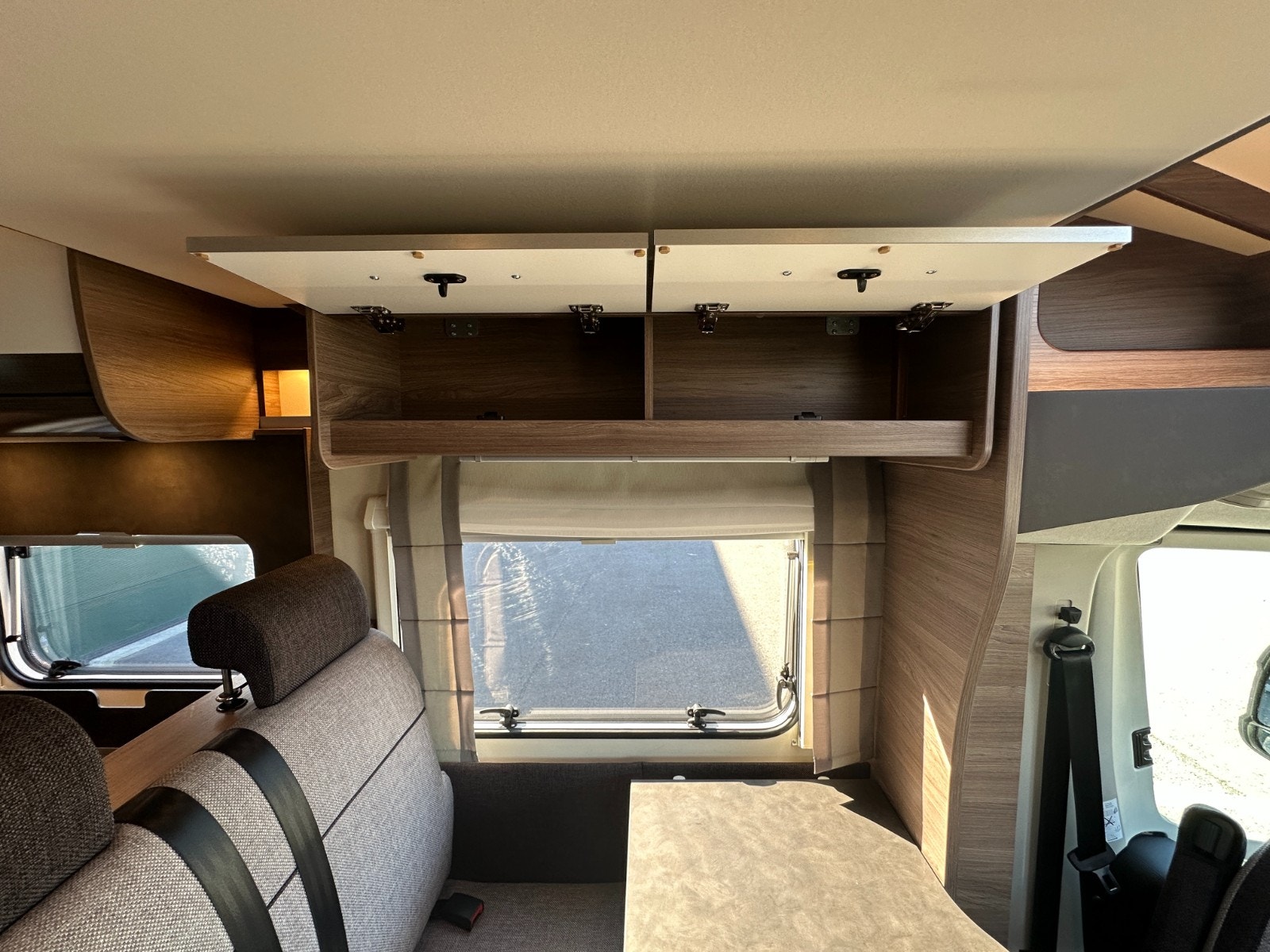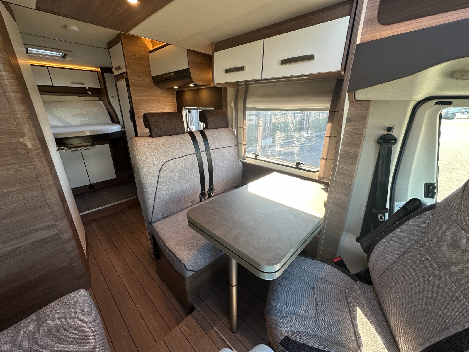 Førerdelen har også Ryggekamera, multifunksjonsratt, formørkning i alle vinduer, Regulerbare pilotstoler med armlene, cruisekontroll og regulerbart ratt. Denne bobilen oppleves nærmest som en flott personbil.