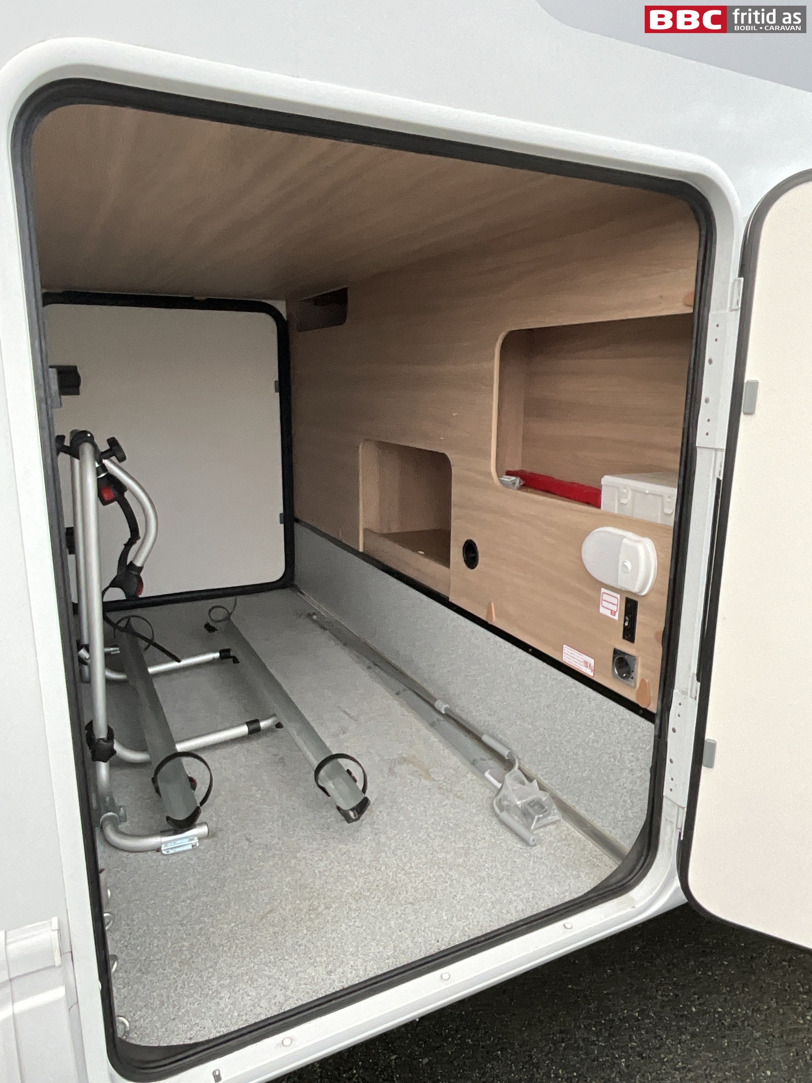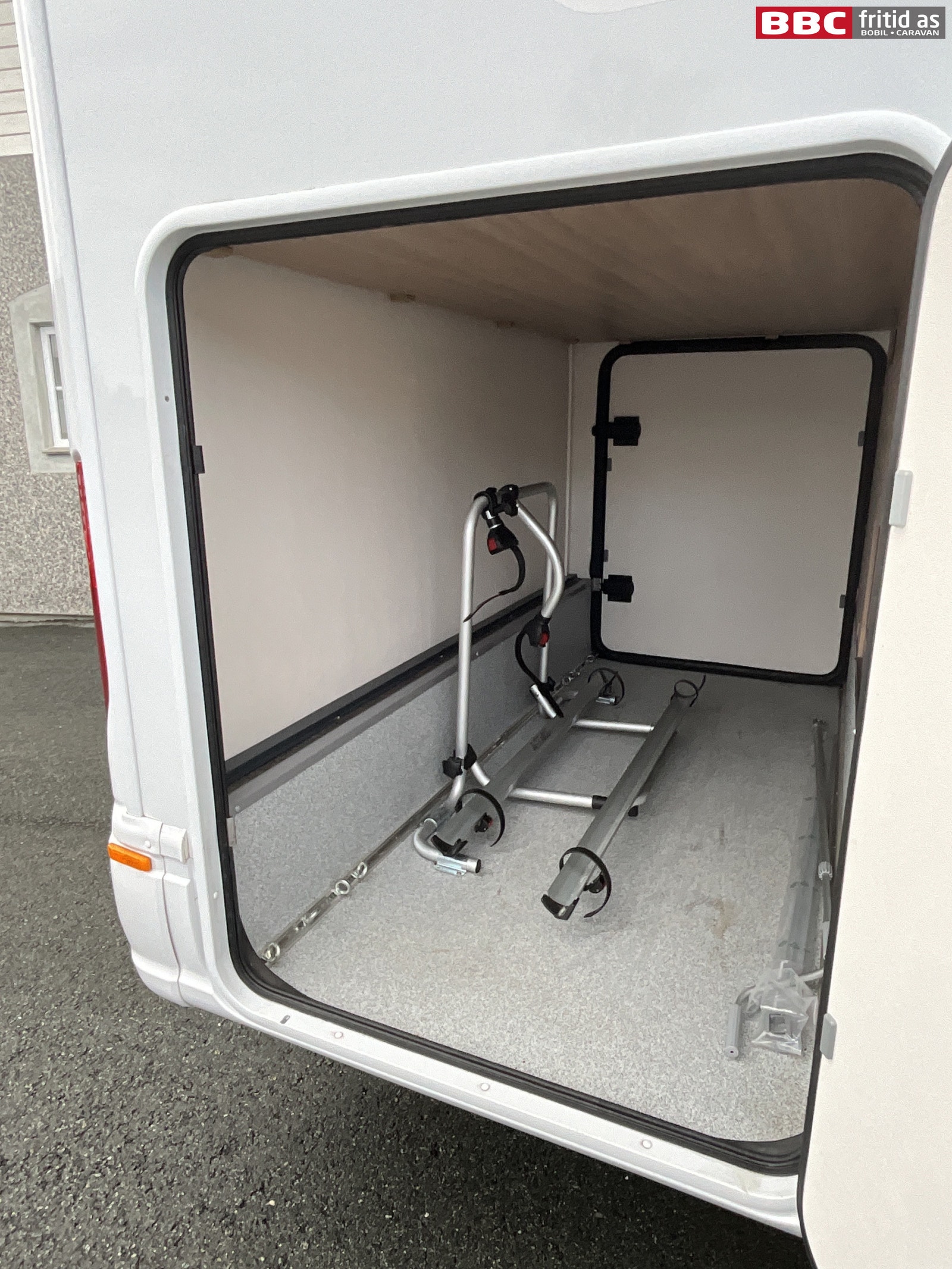 Bak i bilen er det et meget romslig lasterom. Lasteromsdørene på begge sider har en lysåpning på ca 115 x 90 cm. Store nok til å trille inn sykler som kan festes på sykkelstativet som er montert inne i lasterommet (kan tas ut hvis man ikke trenger stativet) Det er også markisestang, surrekroker på skinner i gulvet, veggkroker og varme i rommet.