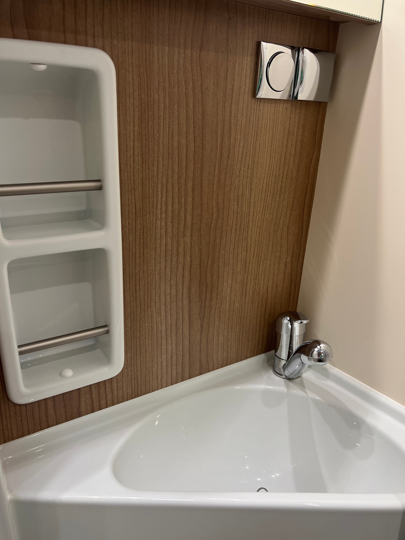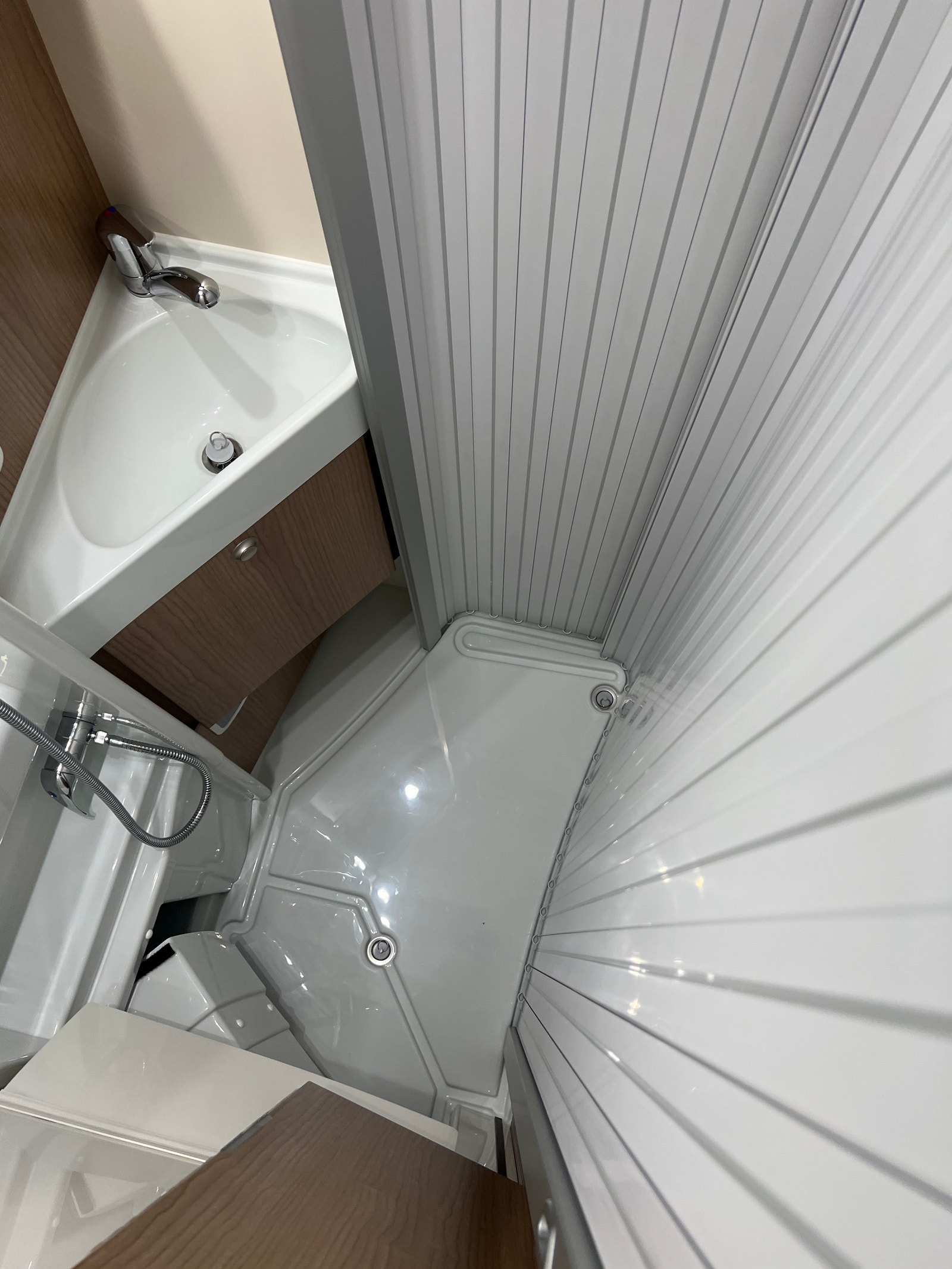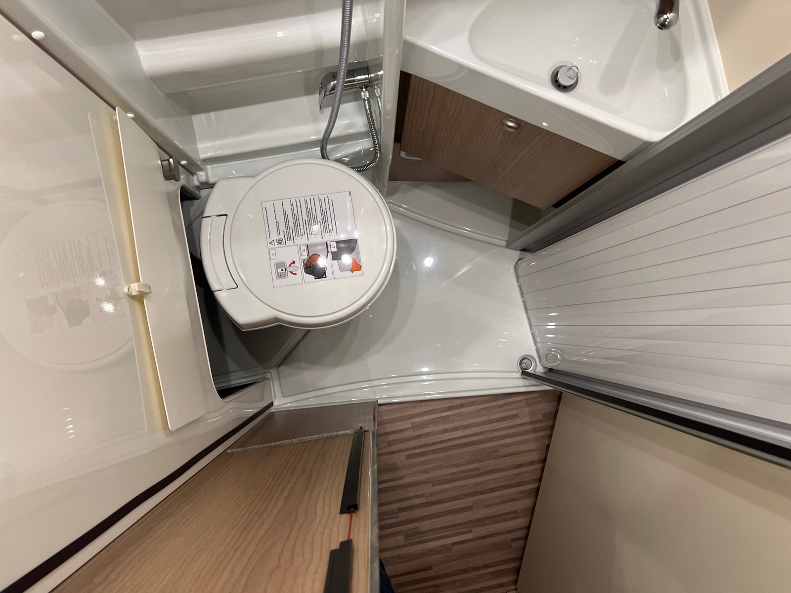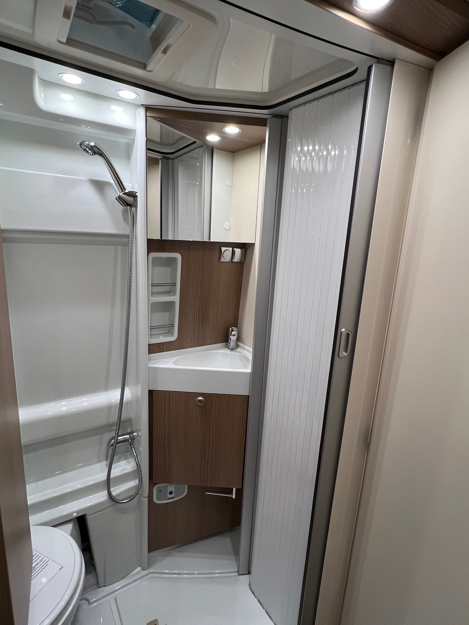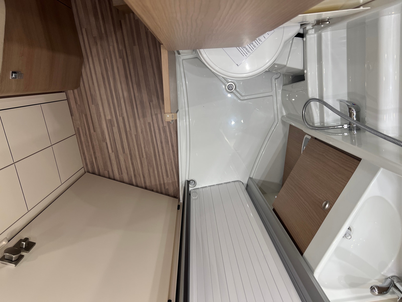 Badet er imponerende! Romslig og praktisk baderom med smarte løsninger. Toalettet kan enkelt svinges bort for perfekt utnyttelse av rommet. Ved hjelp av Skyvedører kan du enkelt gjøre badet om til dusj UTEN klebrig dusjforheng!