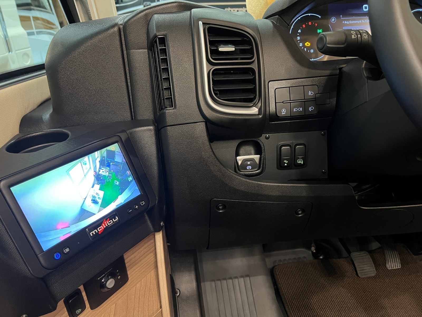 I førerdel har man Aircondition (fullautomatisk), koppholdere, USB-ladepunkt, DAB radio med dobbel-din(stor) skjerm , ryggekamera med egen skjerm til venstre for fører, multifunksjonsratt , formørkning i alle vinduer, regulerbare pilotstoler med armlene og svært høy komfort, cruisekontroll, 9 trinns automatgir, et vinklet dashbord som gir klassens beste sikt ut ved kjøring, og masse mer!