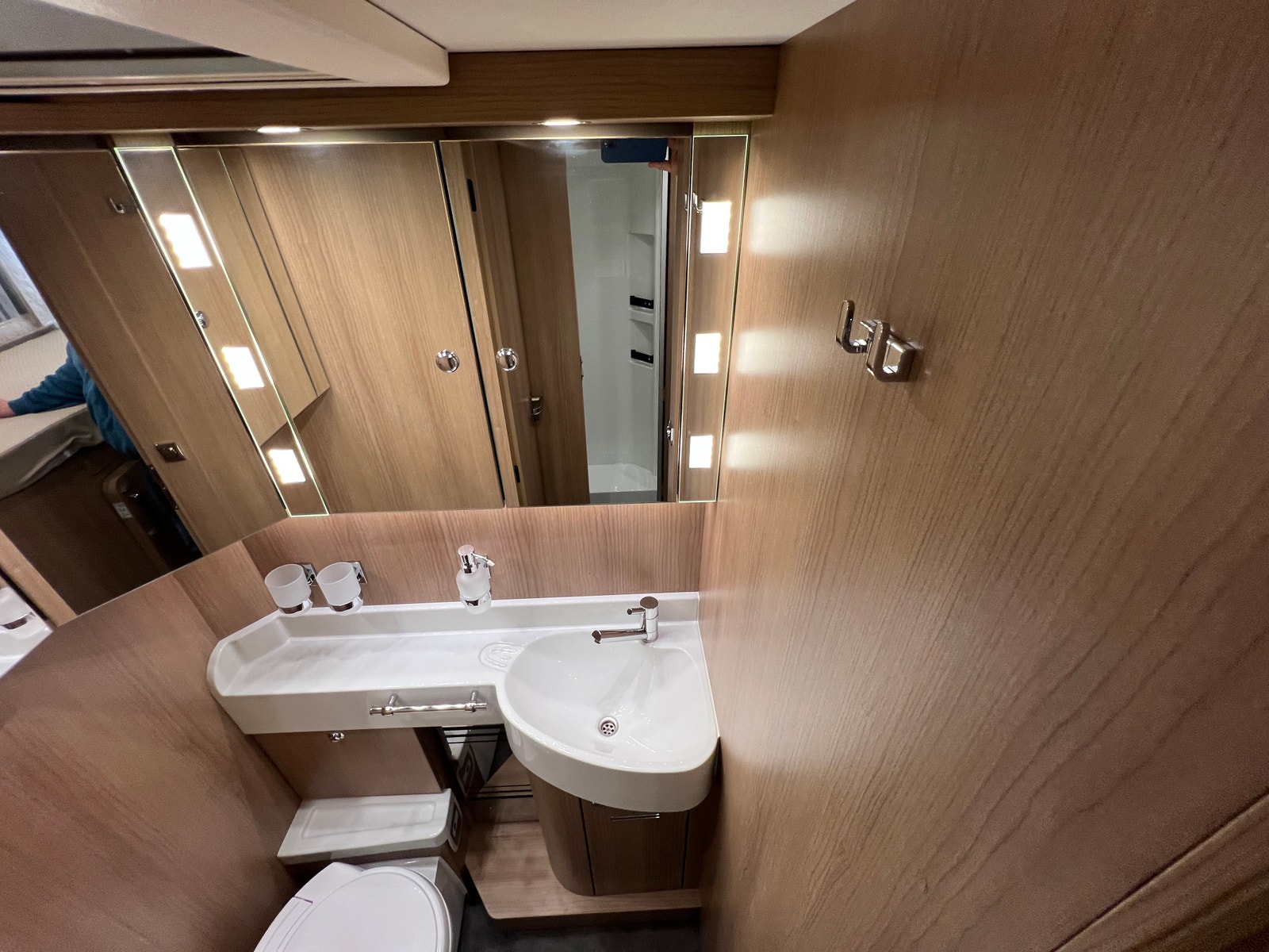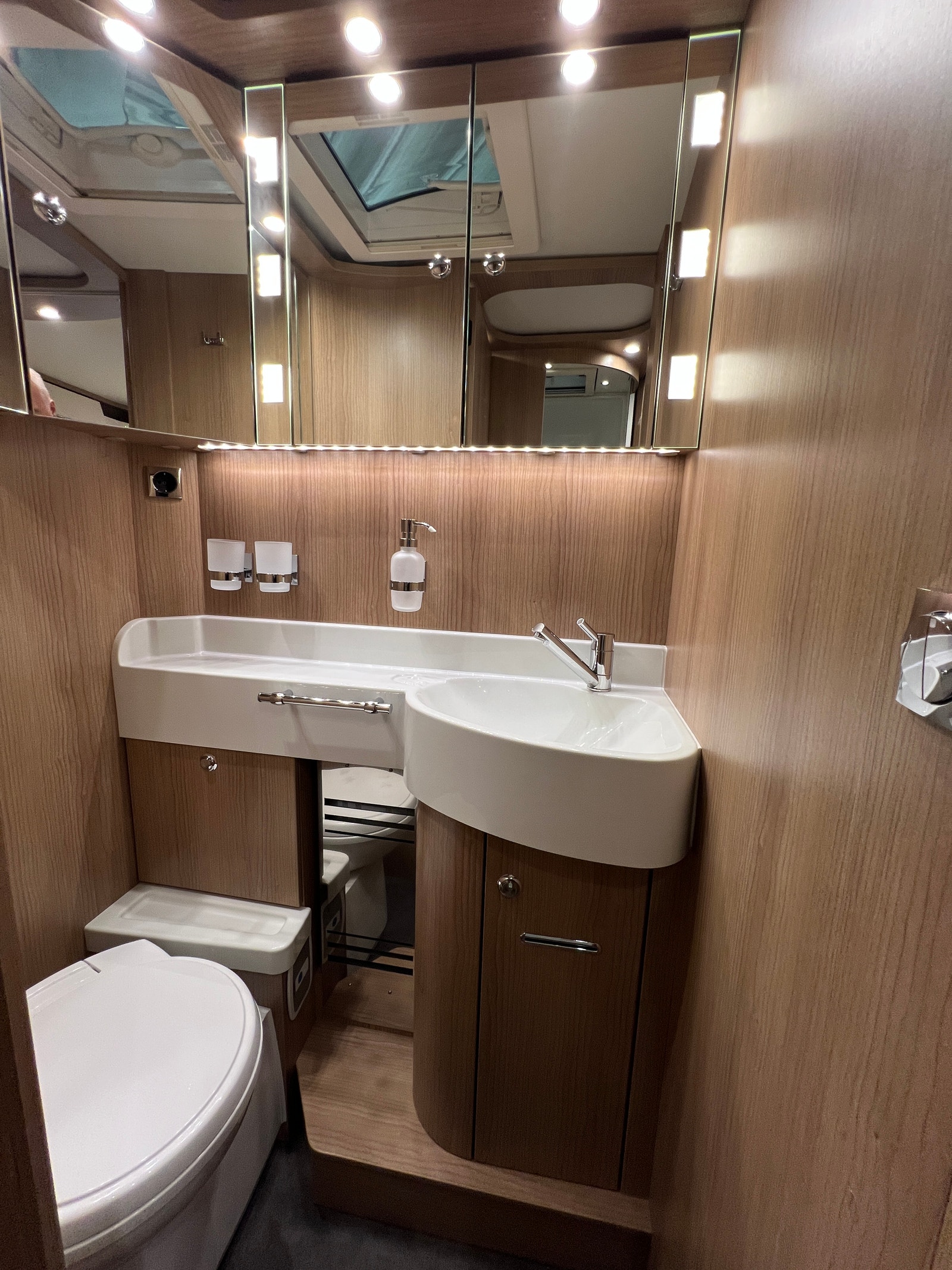 • Bade-/toalettrom med dusj på motstående side, romslig dusjrom og godt lys og ventilasjon i badet og dusjen ved hjelp av takluken