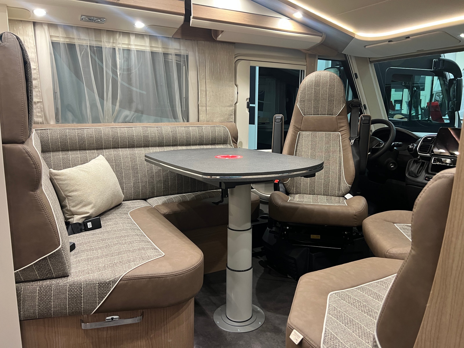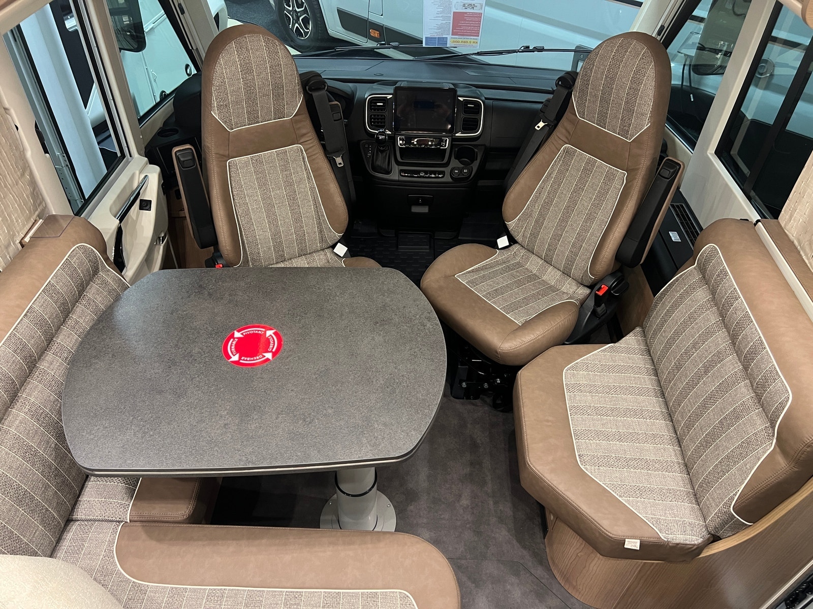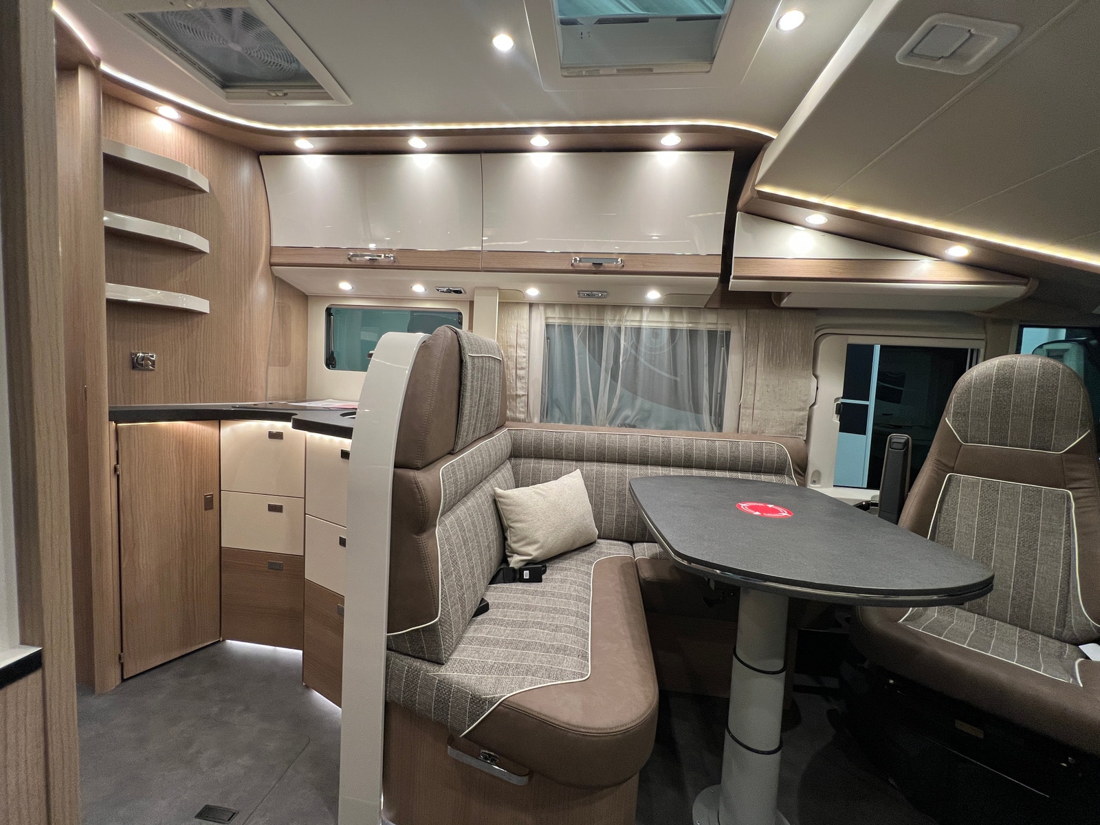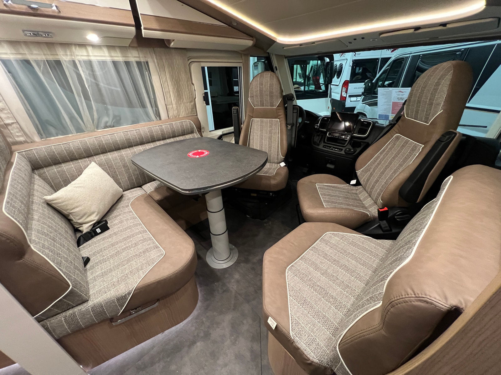Selv om bobilen har 3 godkjente senger bak og 2 godkjente senger i senkeseng finnes det også mulighet for en til seng i salong. Denne soveplassen lager man til ved å senke salongbordet. Med en medfølgende madrass kan 1 person ligge på tvers fra sitteplass via bordet til salongen.