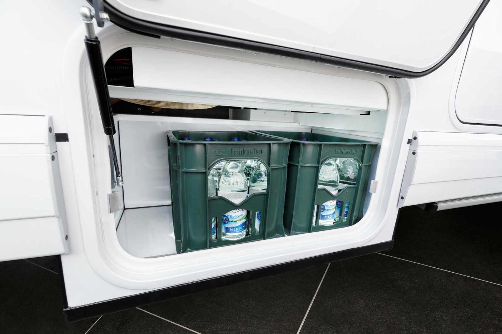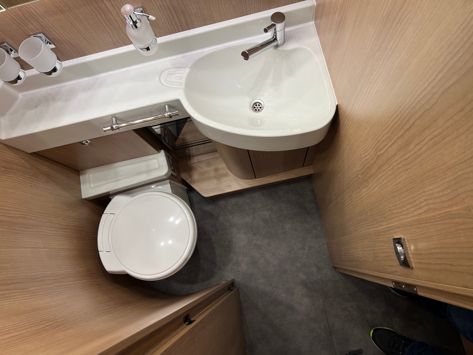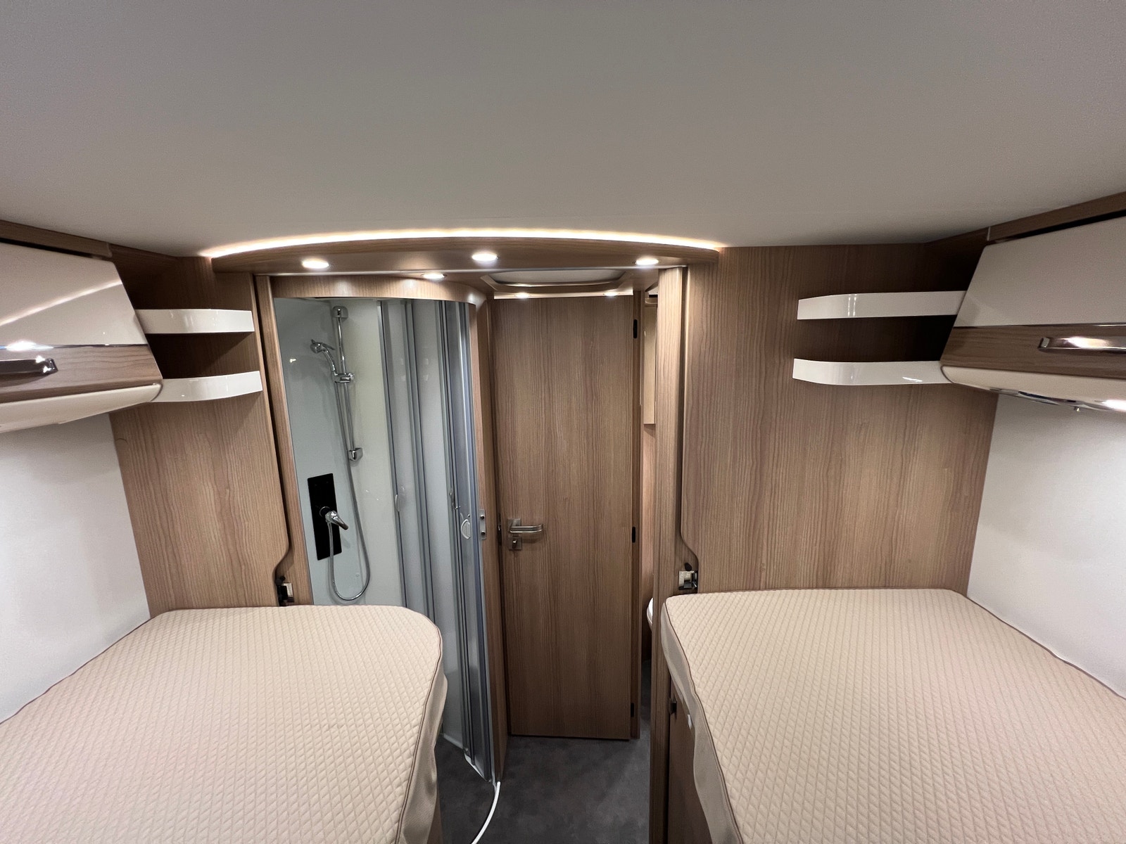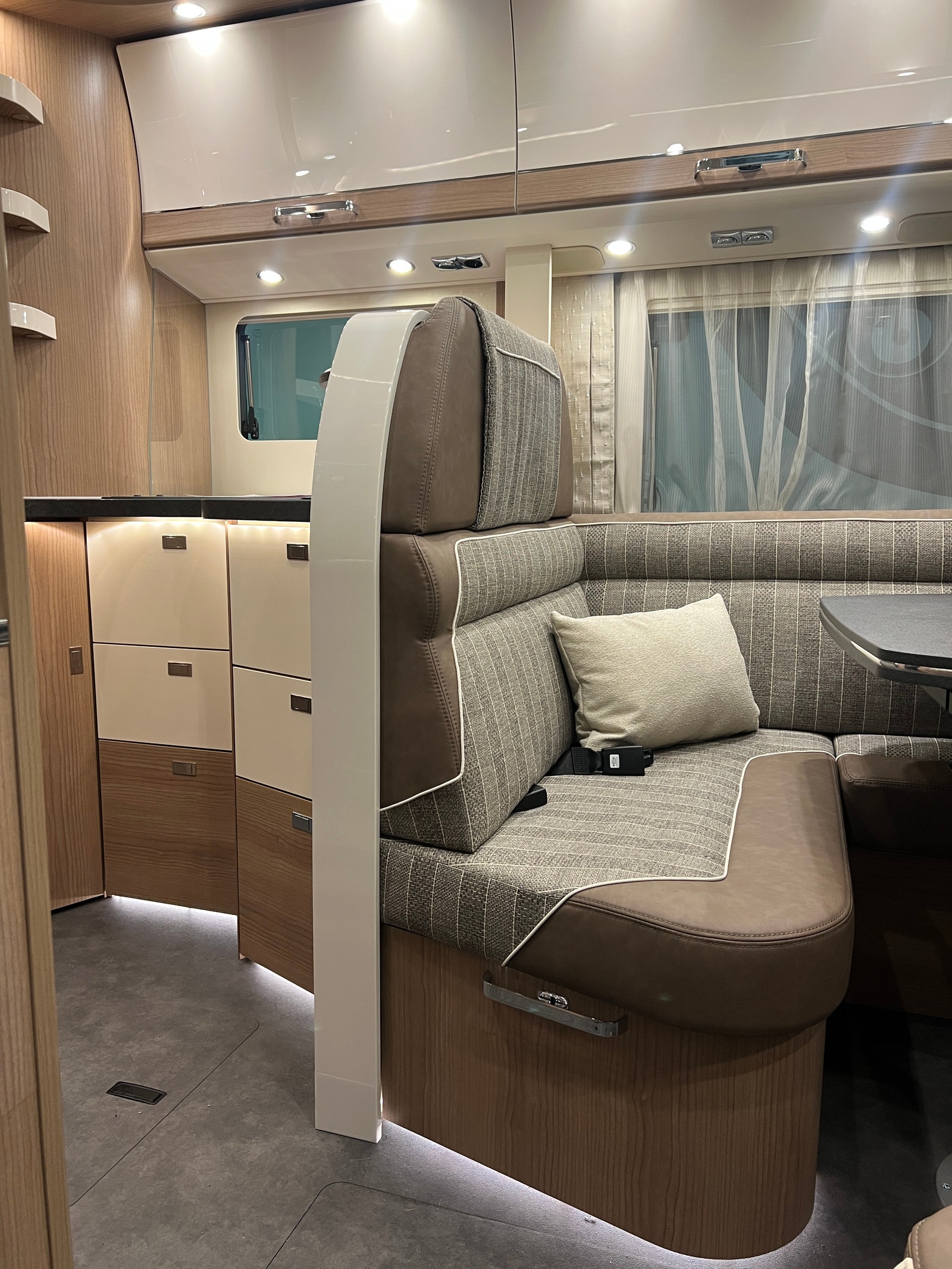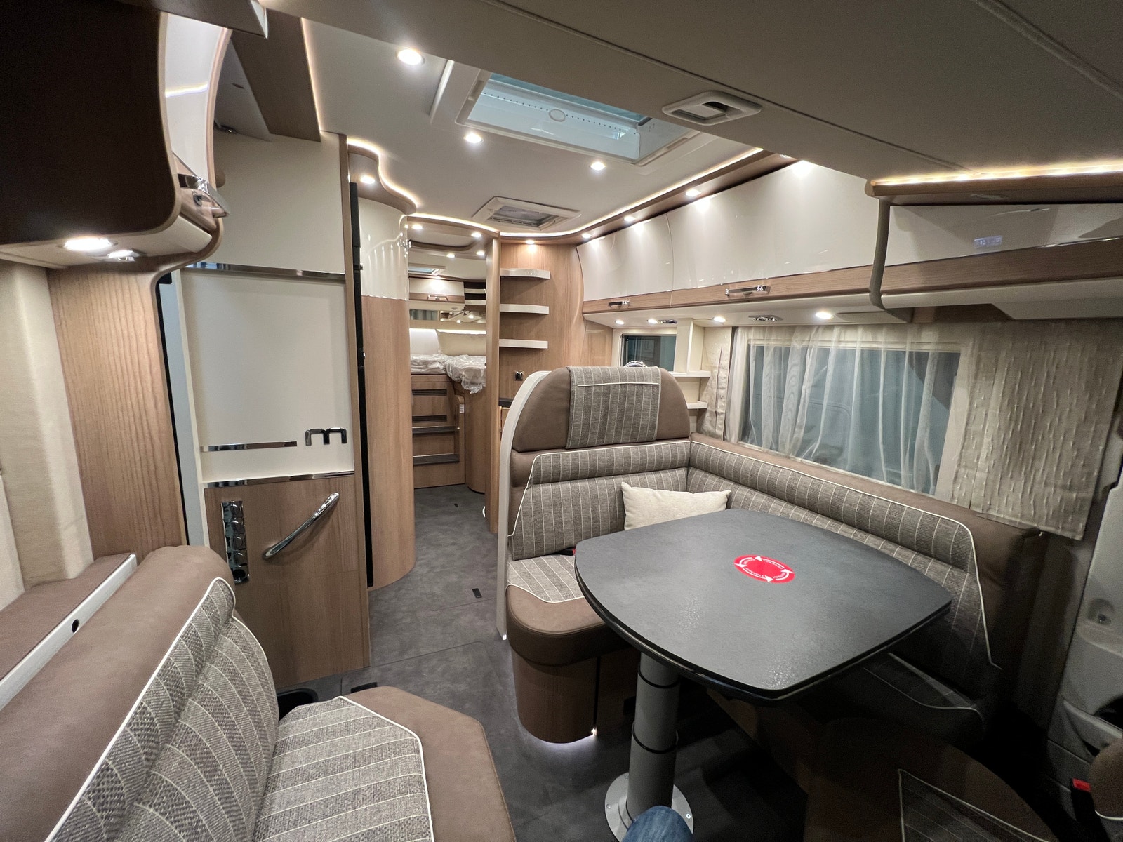 Selv om bobilen har 3 godkjente senger bak og 2 godkjente senger i senkeseng finnes det også mulighet for en til seng i salong. Denne soveplassen lager man til ved å senke salongbordet. Med en medfølgende madrass kan 1 person ligge på tvers fra sitteplass via bordet til salongen.