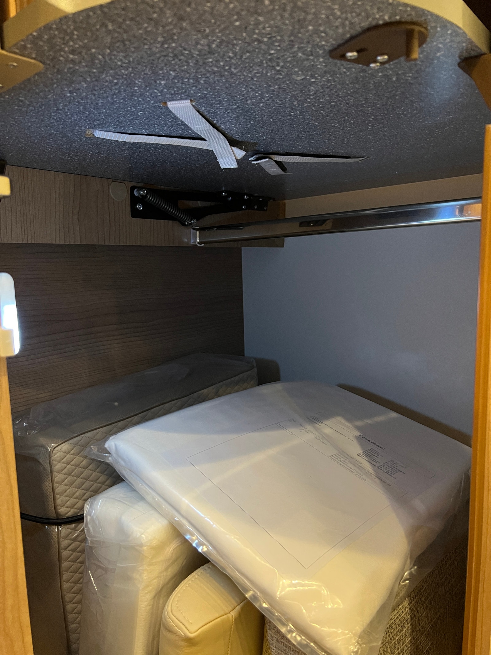 Deler av sengen kan enkelt løftes opp for å få oversikt og enkel tilgang til garderoben