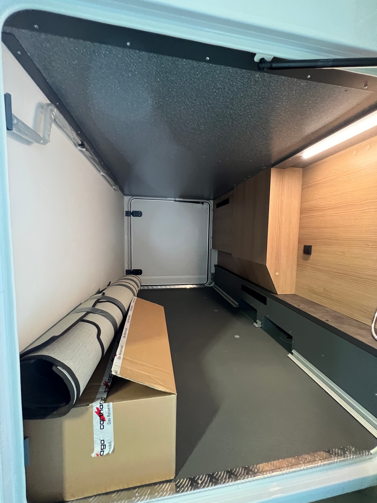 Her kan en enkelt lage innredning etter ønske. For eksempel stroppefester til å feste mc, el sykkel, bord, stoler grill osv.