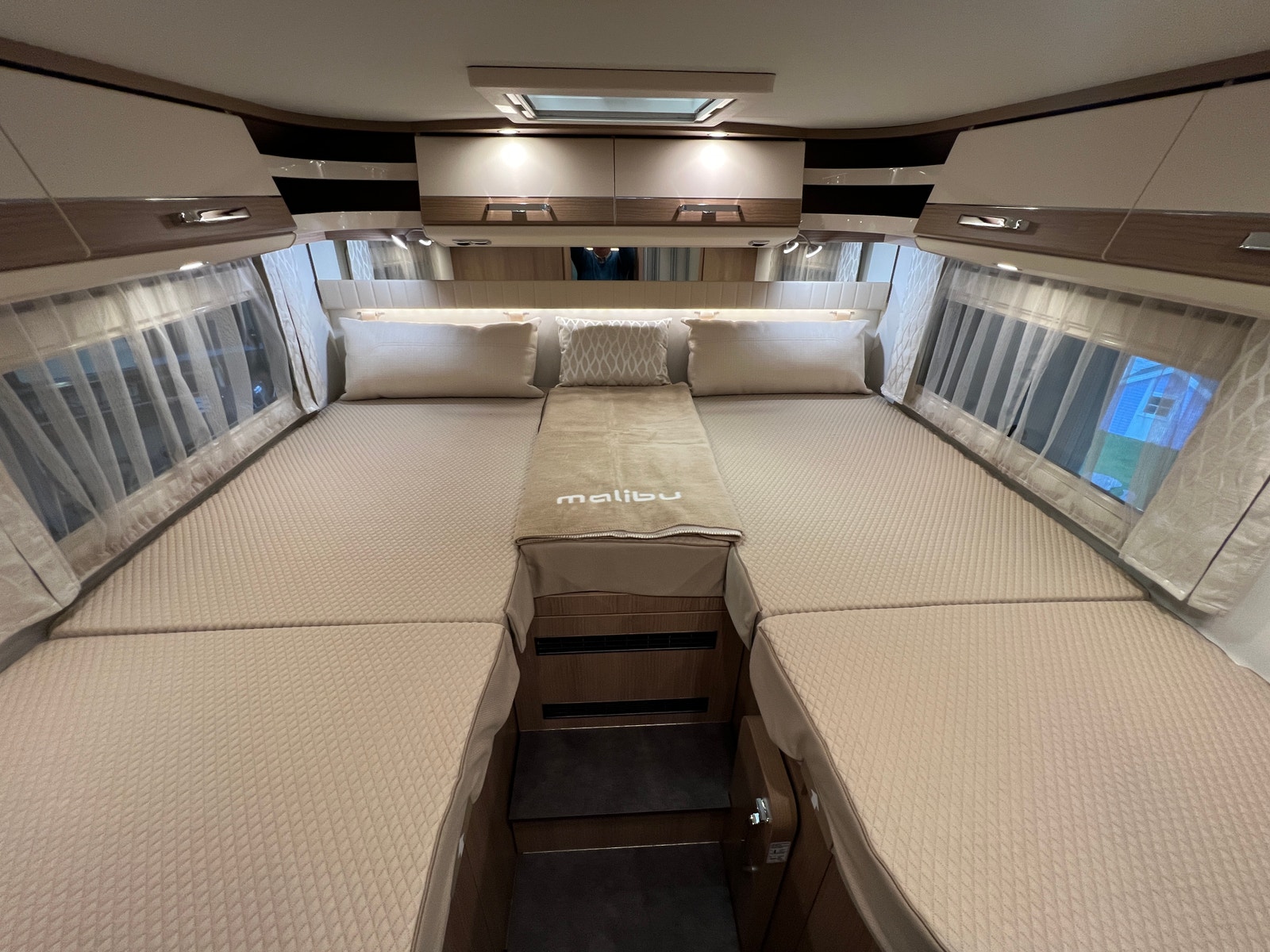Denne modellen har den populære løsningen med 2 enkle senger bak som kan slås sammen til en enorm «Kingsize» seng!