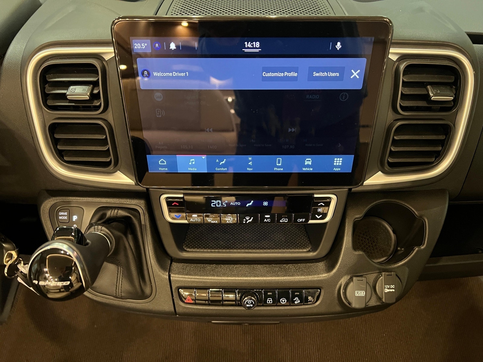 I førerdel har man Aircondition (fullautomatisk), koppholdere, USB-ladepunkt, DAB radio med dobbel-din(stor) skjerm , ryggekamera med egen skjerm til venstre for fører, multifunksjonsratt , formørkning i alle vinduer, regulerbare pilotstoler med armlene og svært høy komfort, cruisekontroll, 9 trinns automatgir, et vinklet dashbord som gir klassens beste sikt ut ved kjøring, og masse mer!