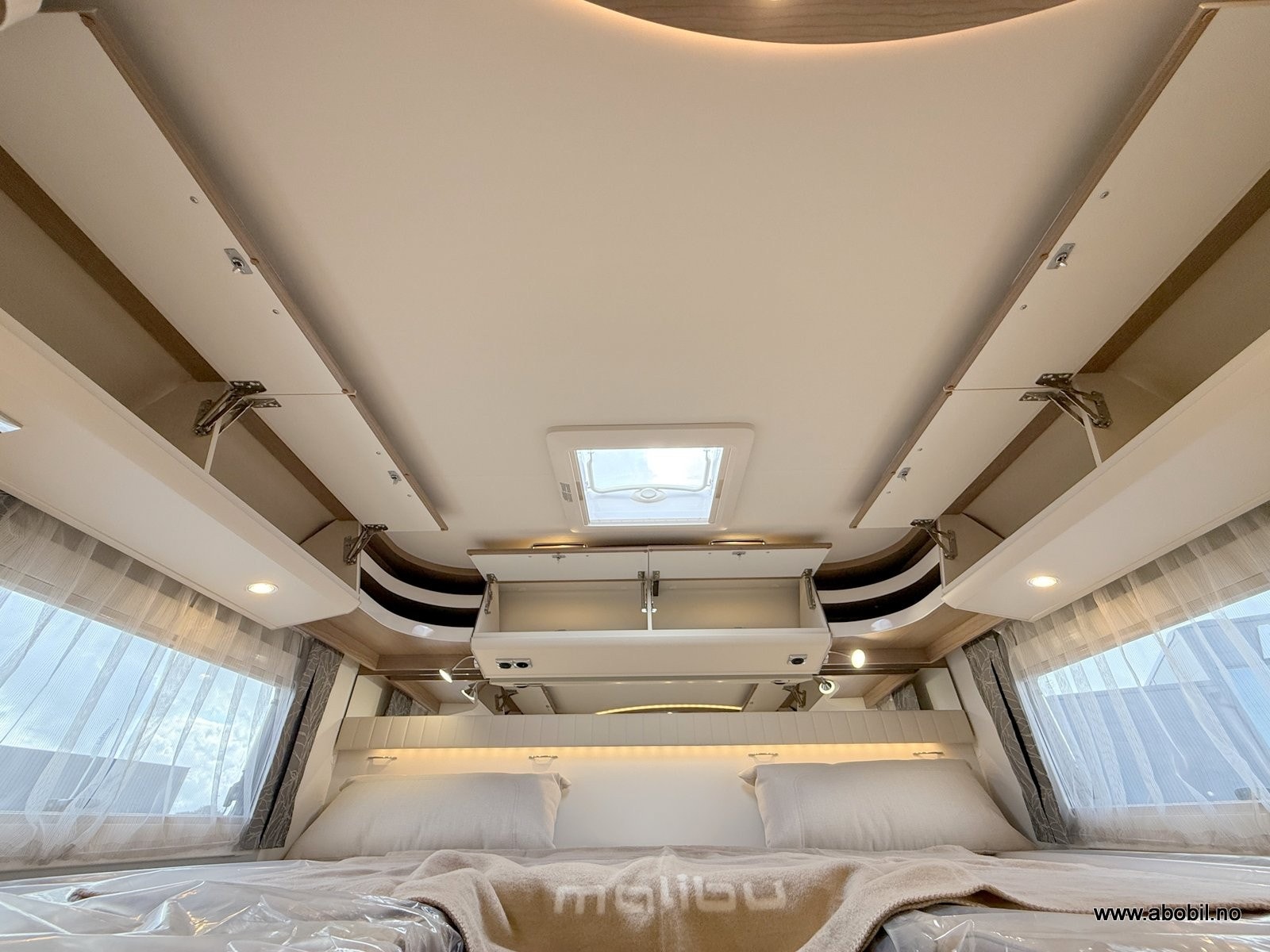 Bobilen har to komfortable enkeltsenger som enkelt kan gjøres om til en stor dobbeltseng. Rikelig oppbevaringsplass over sengen, garderobe under, og store vinduer med formørkningsgardiner og myggnetting sikrer komfort og praktiske løsninger på tur.
