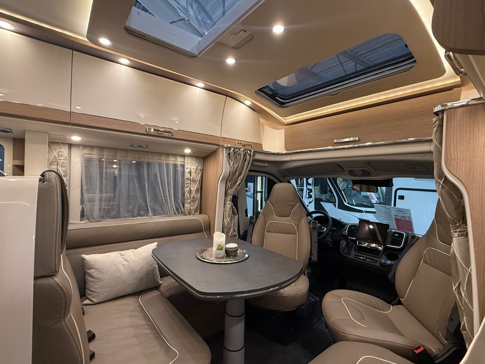 Denne er blant annet utstyrt med Fiat sin nye 9trinns girkasse, 4 sitteplasser, LED frontlys, ALDE vannbåren varme med varme veksler for forvarming av motor, ratt med knapper, SOG toalett utlufting, Solcellepanel , markise og MASSE MER! Se utstyrsliste lengre nede i teksten.