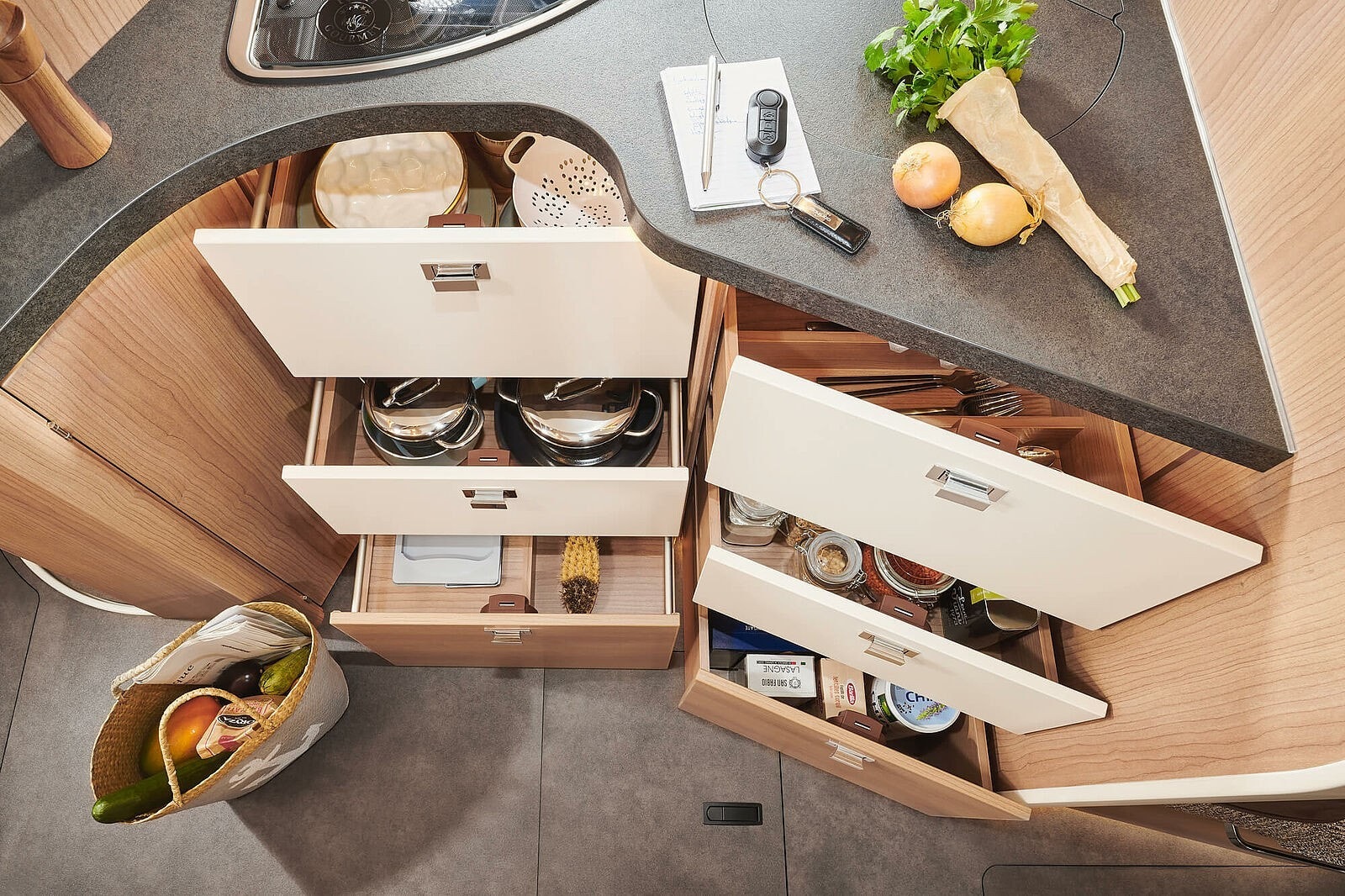 Ekstra store overskap hele veien rundt – maksimer lagringsplassen.