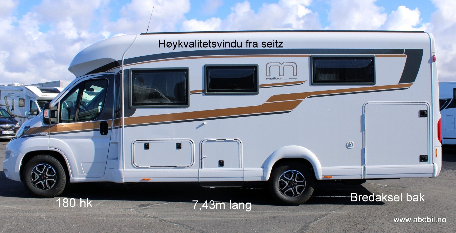 Vi har endelig fått en bestselger fra Malibu direkte fra fabrikk. Her med det tidløse "PARIS" interiør og lys grå.