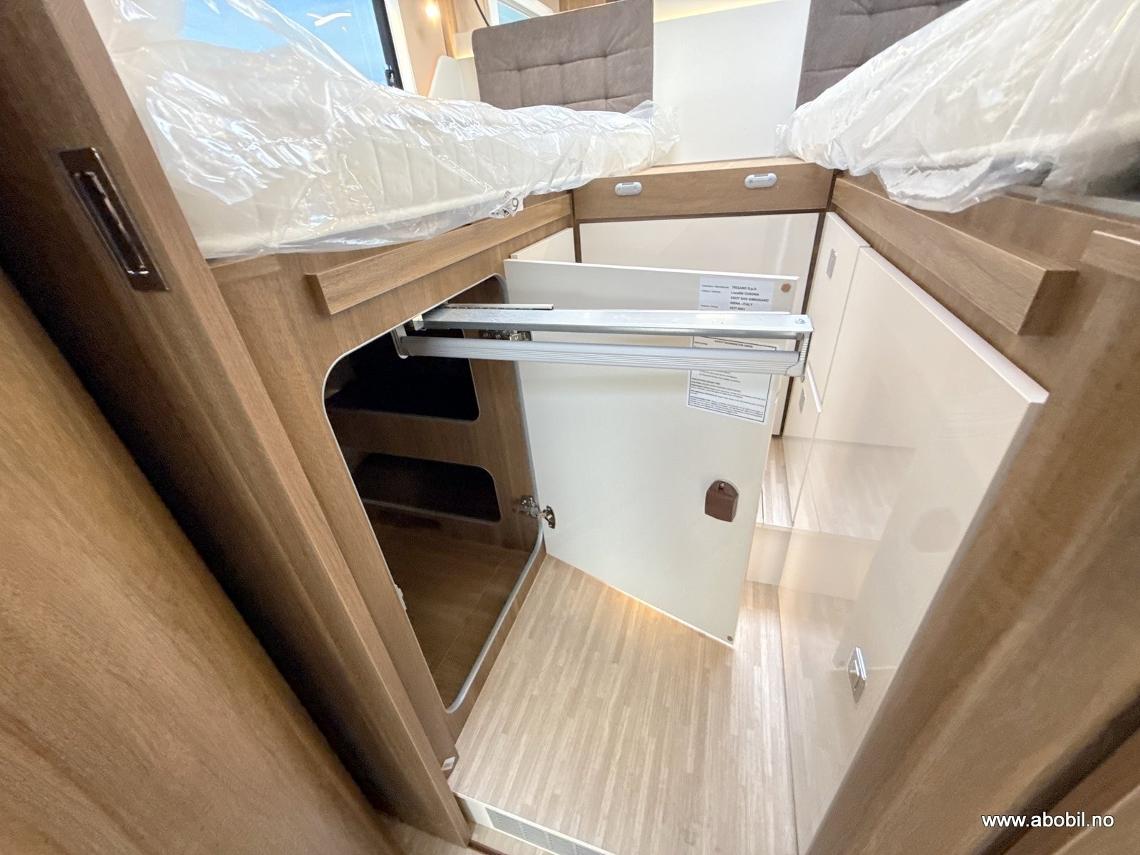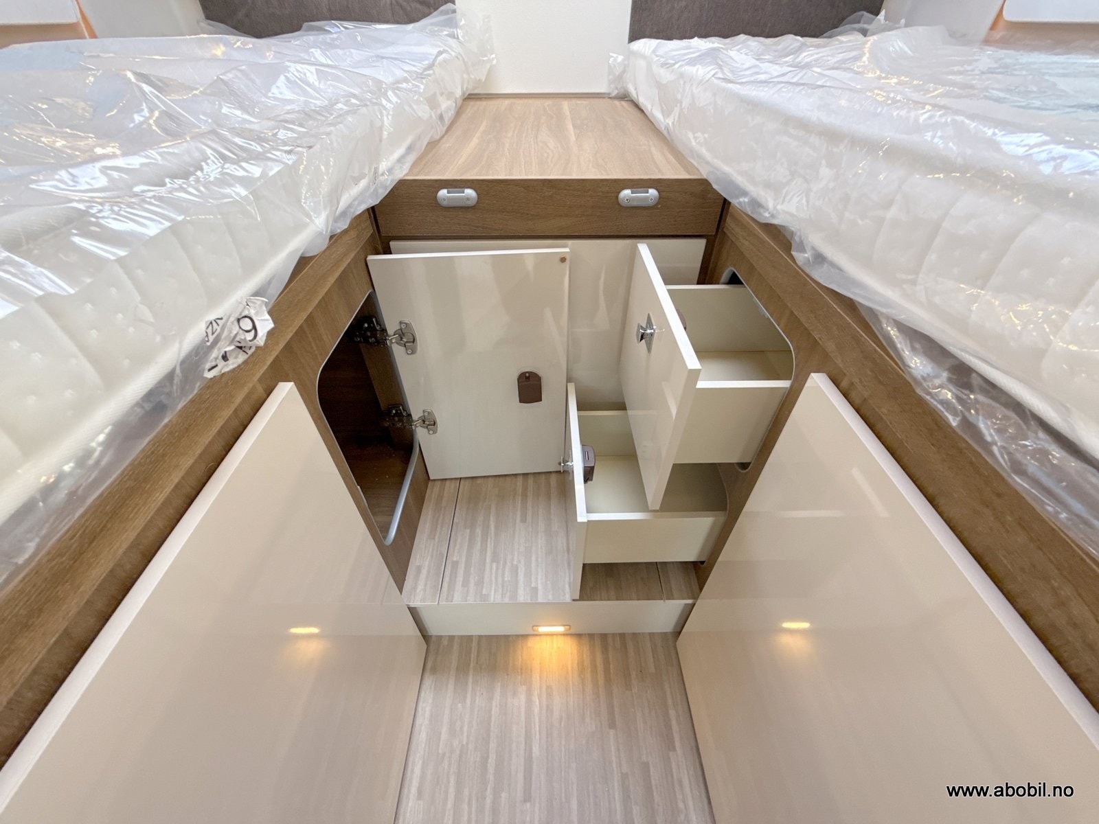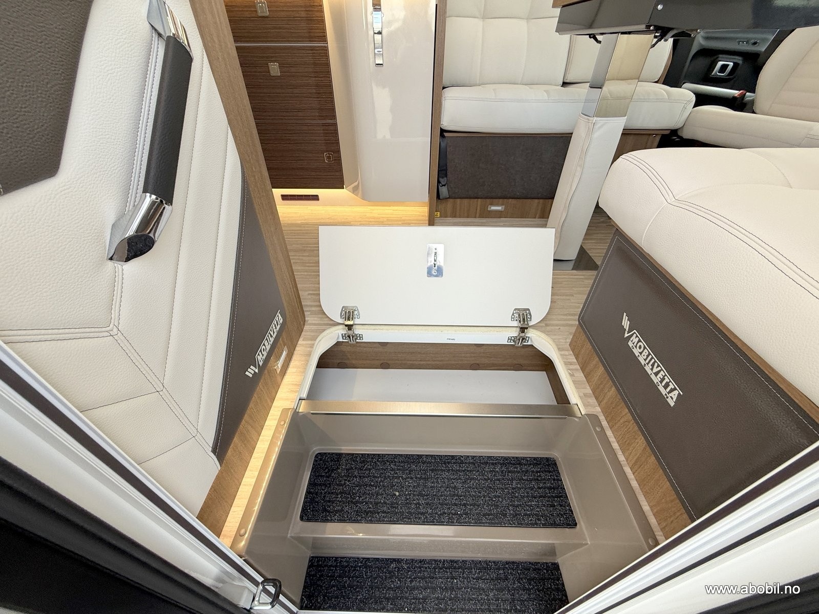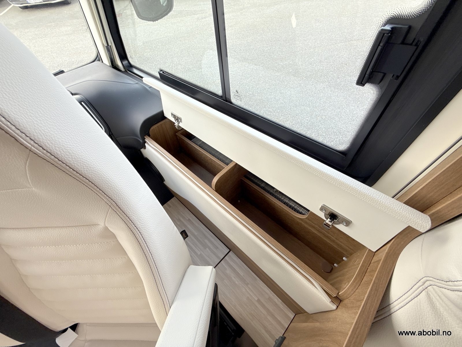 Oppbevaring: Flere skap og skuffer med soft-close funksjon, samt ekstra lagringsrom ved passasjersiden.