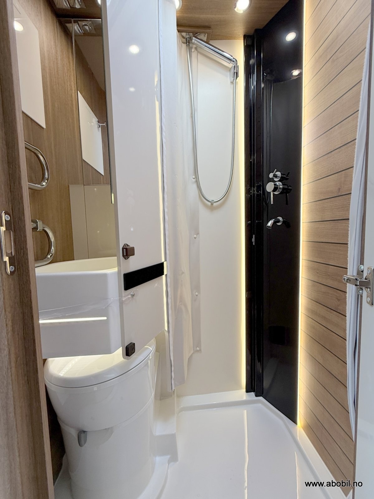 Dusj: Separat dusjkabinett med dobbel avløp for optimal drenering, selv ved fricamping.
