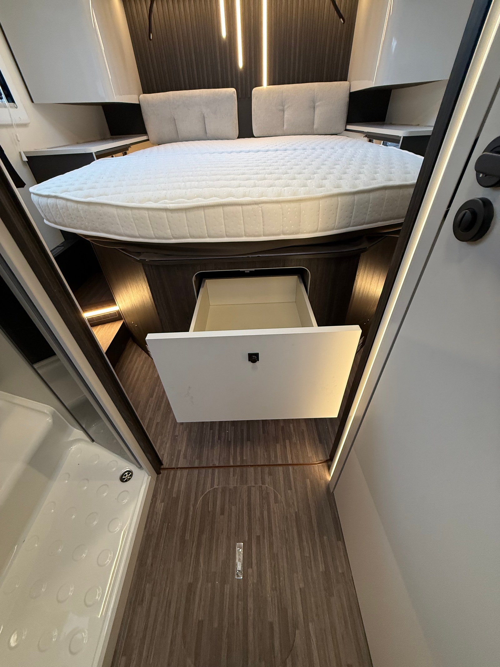 Kea I90 er mer enn bare en bobil – det er din private lounge på hjul. Her får du romslige løsninger, elegant italiensk design og en atmosfære som oser av kvalitet. Den aerodynamiske fronten, buss-speilene og de sofistikerte linjene gjør at denne modellen skiller seg ut fra mengden – både på campingplassen og på motorveien.