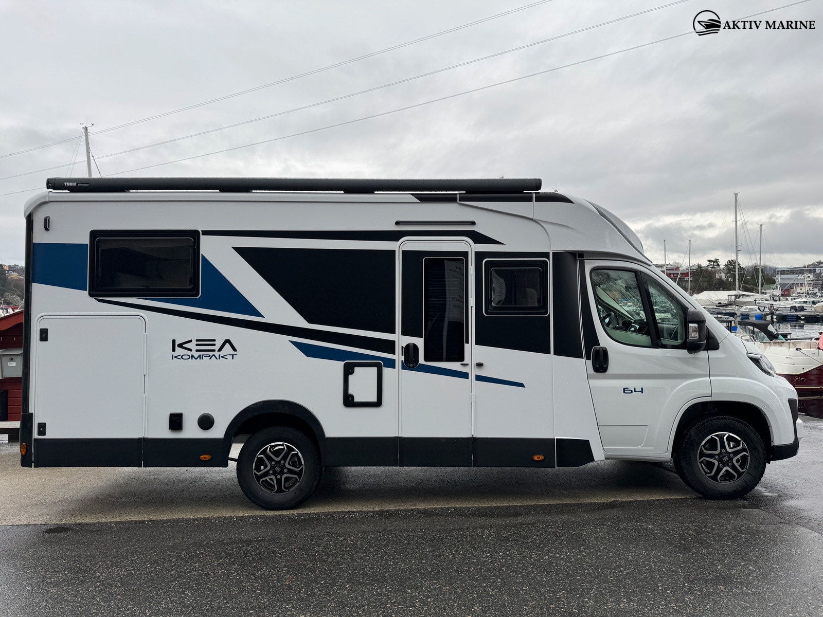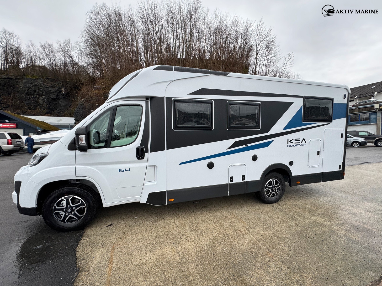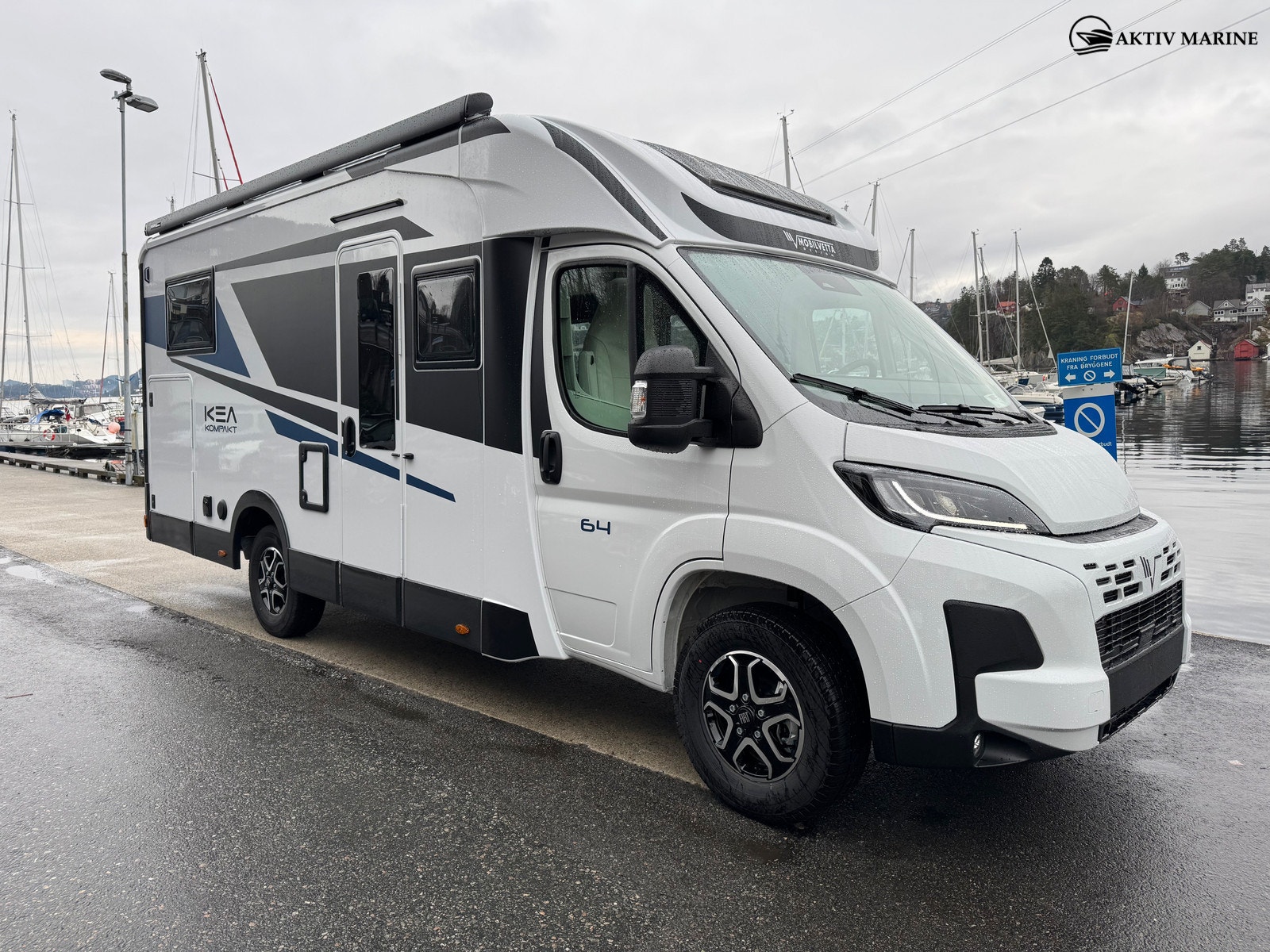 Mobilvetta KEA Kompakt 64 er under 7 meter og kun 215cm bred, en fin kombinasjon av komfort og smidighet. Den er enkel å manøvrere, samtidig som du får alle fordelene med en fullverdig bobil. Et flott neste steg etter f.eks. en bybobil.